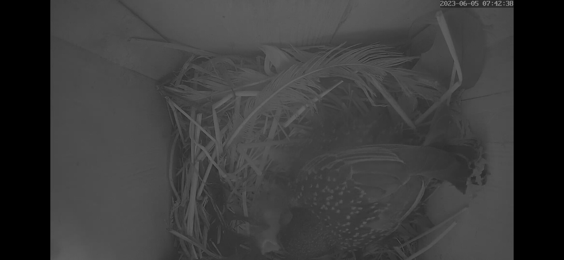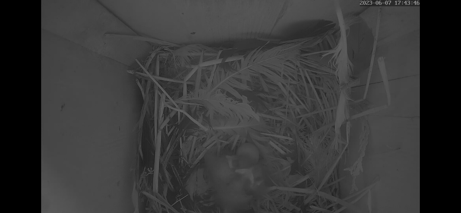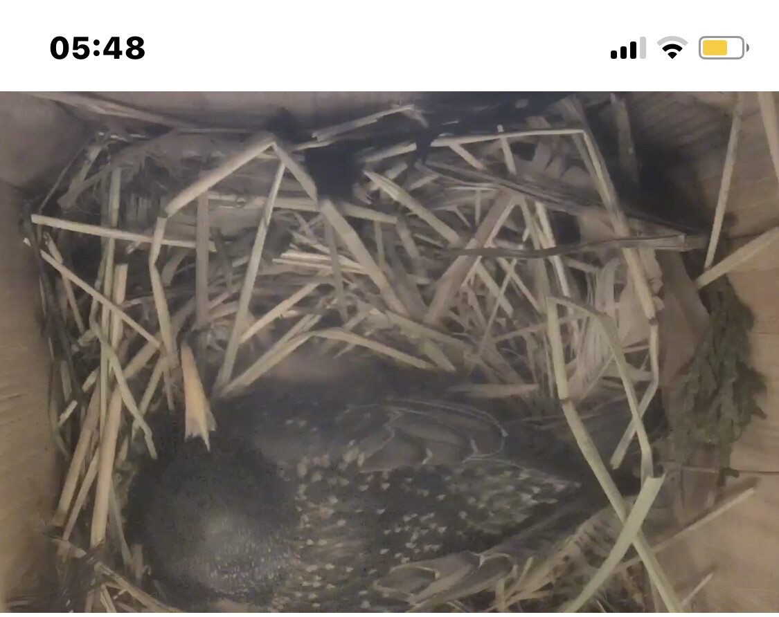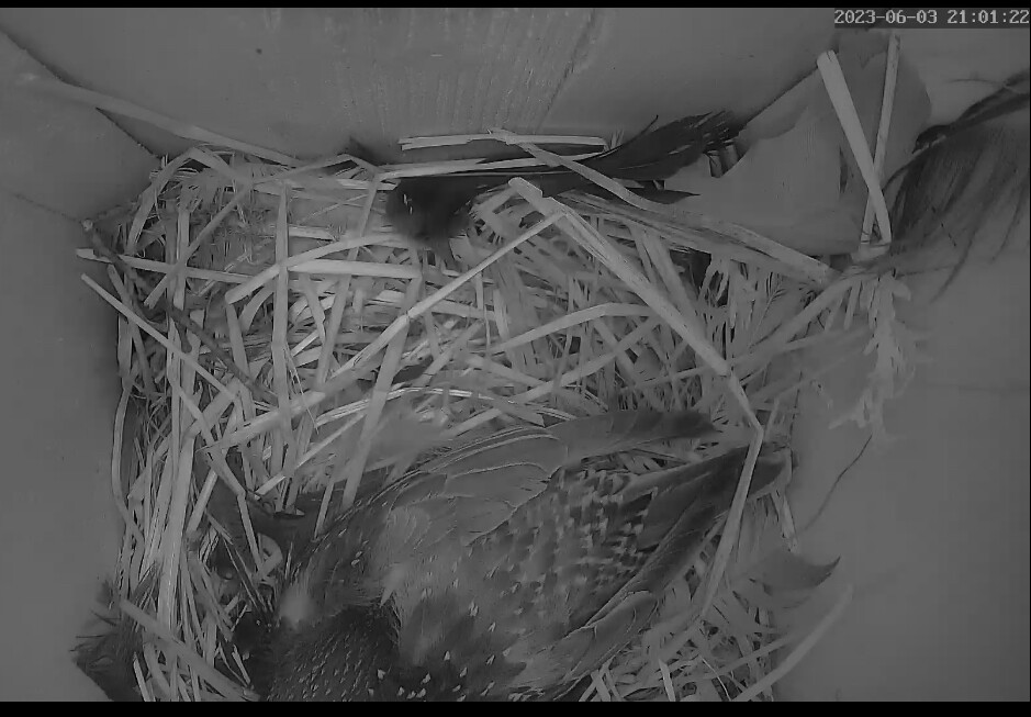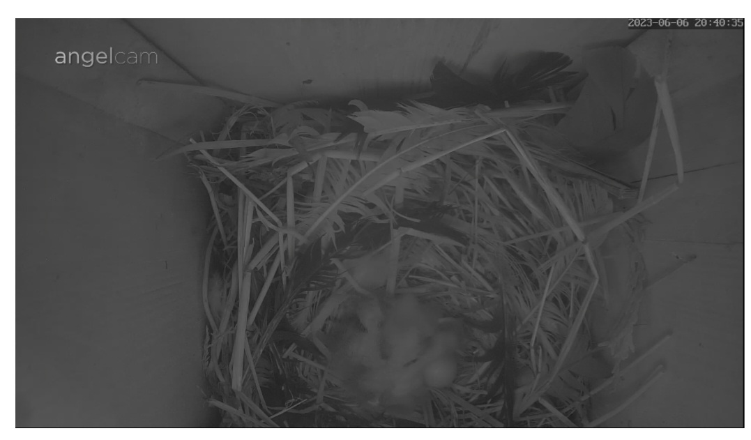 Zeigt die Kamera nur bei mir nachts kein Bild? Aber ich höre es gruschteln und nehme an das der Altvogel bei den kleinen Küken ist. Gute Nacht ![]()