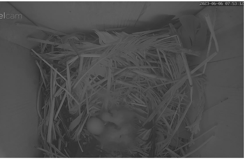 Sie brütet noch! Erst zwei Küken sind geschlüpft, manchmal klopft sie mit dem Schnabel an den Kasten oder ruft. Kann es sein, dass sie Unterstützung von dem Männchen anfordert, eine:r muss vielleicht schon füttern und die beiden Eier müssen gleichzeitig ausgebrütet werden. Weiß jemand wie das funktioniert?