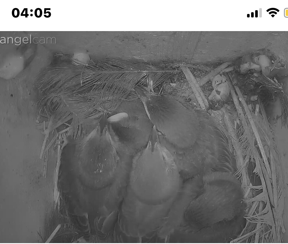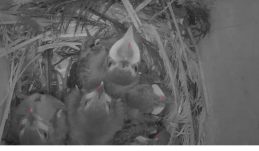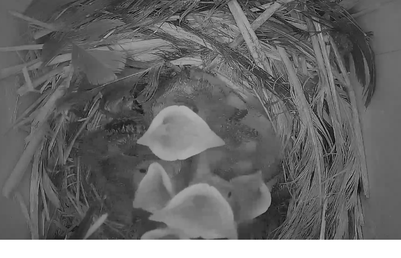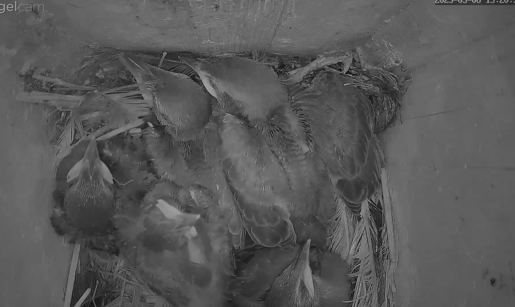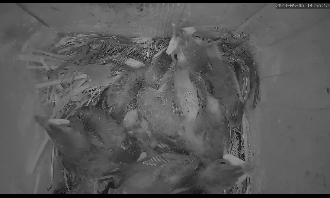 Sind die Kleinen bald soweit, dass sie sich selbst versorgen müssen? Mir ist gestern aufgefallen, dass die Mami sich nur noch selten blicken lässt. Ist auch eng geworden im Brutkasten.