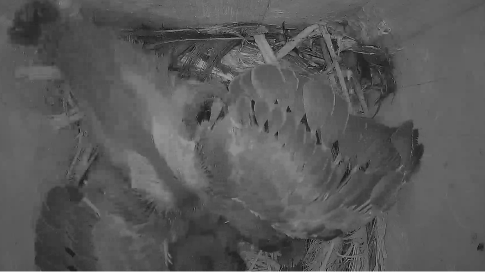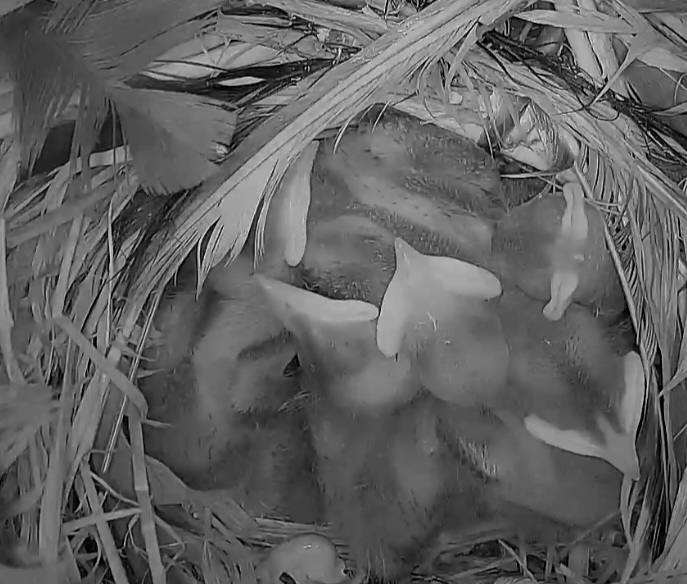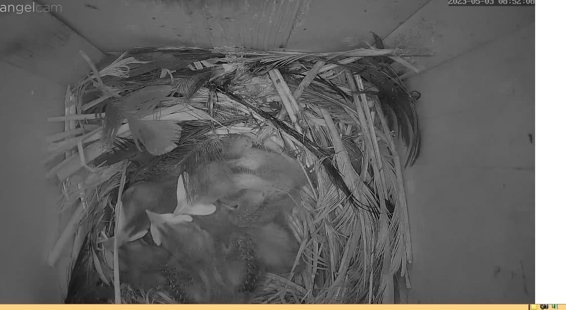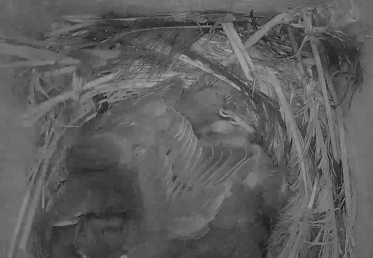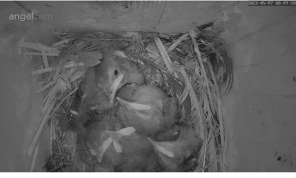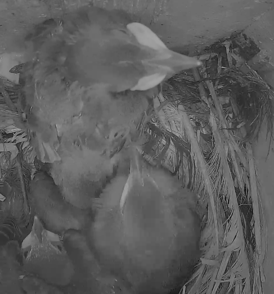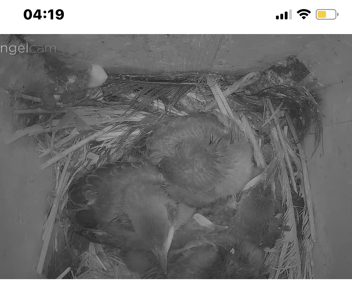Sind die Kleinen bald soweit, dass sie sich selbst versorgen müssen? Mir ist gestern aufgefallen, dass die Mami sich nur noch selten blicken lässt. Ist auch eng geworden im Brutkasten.