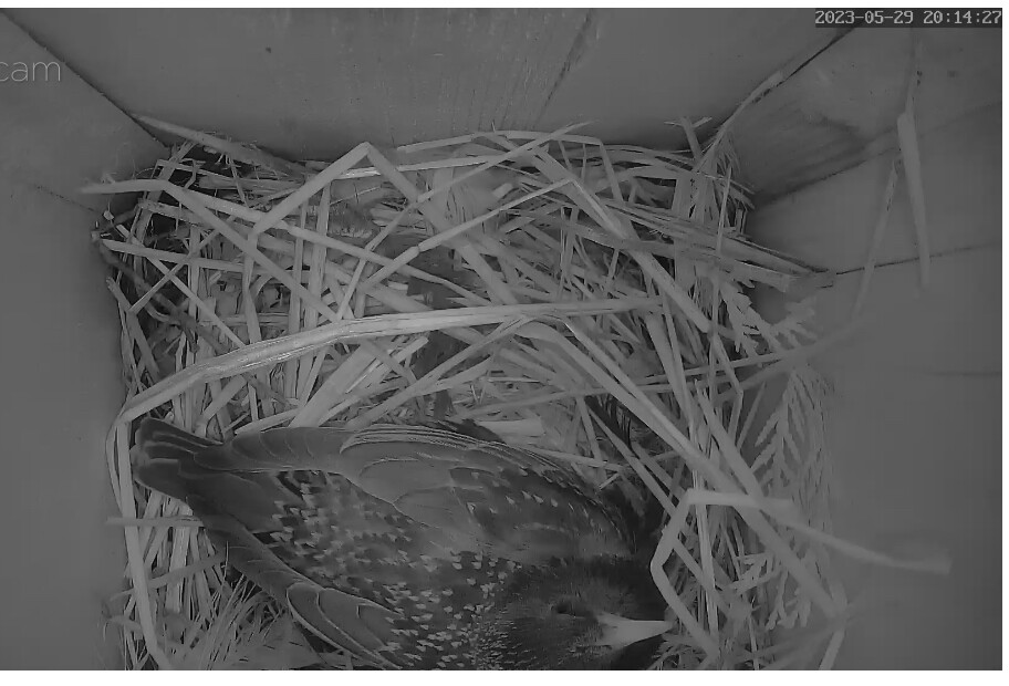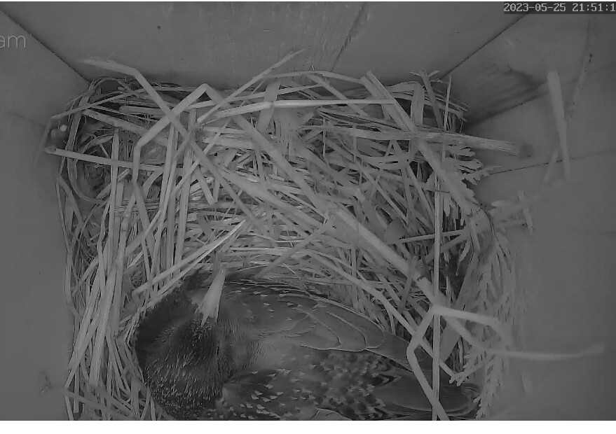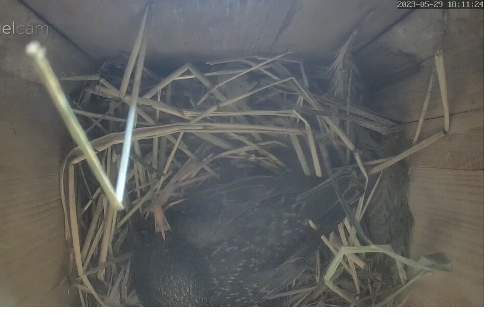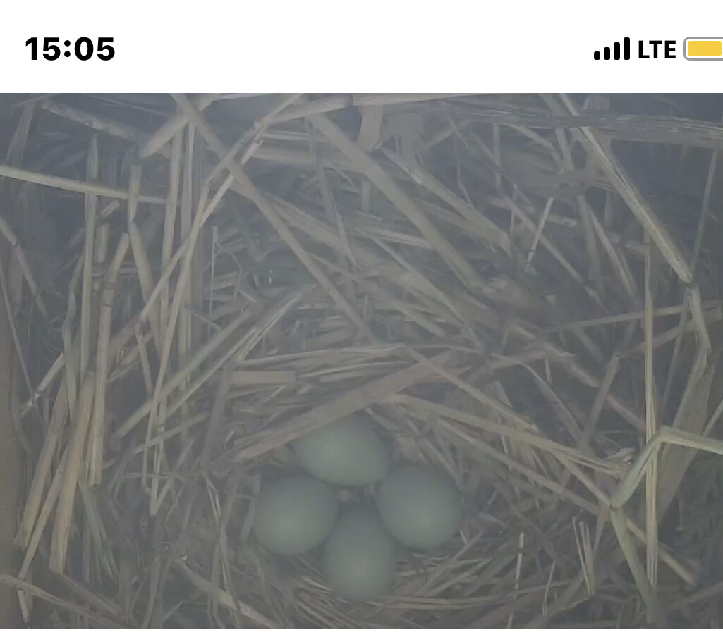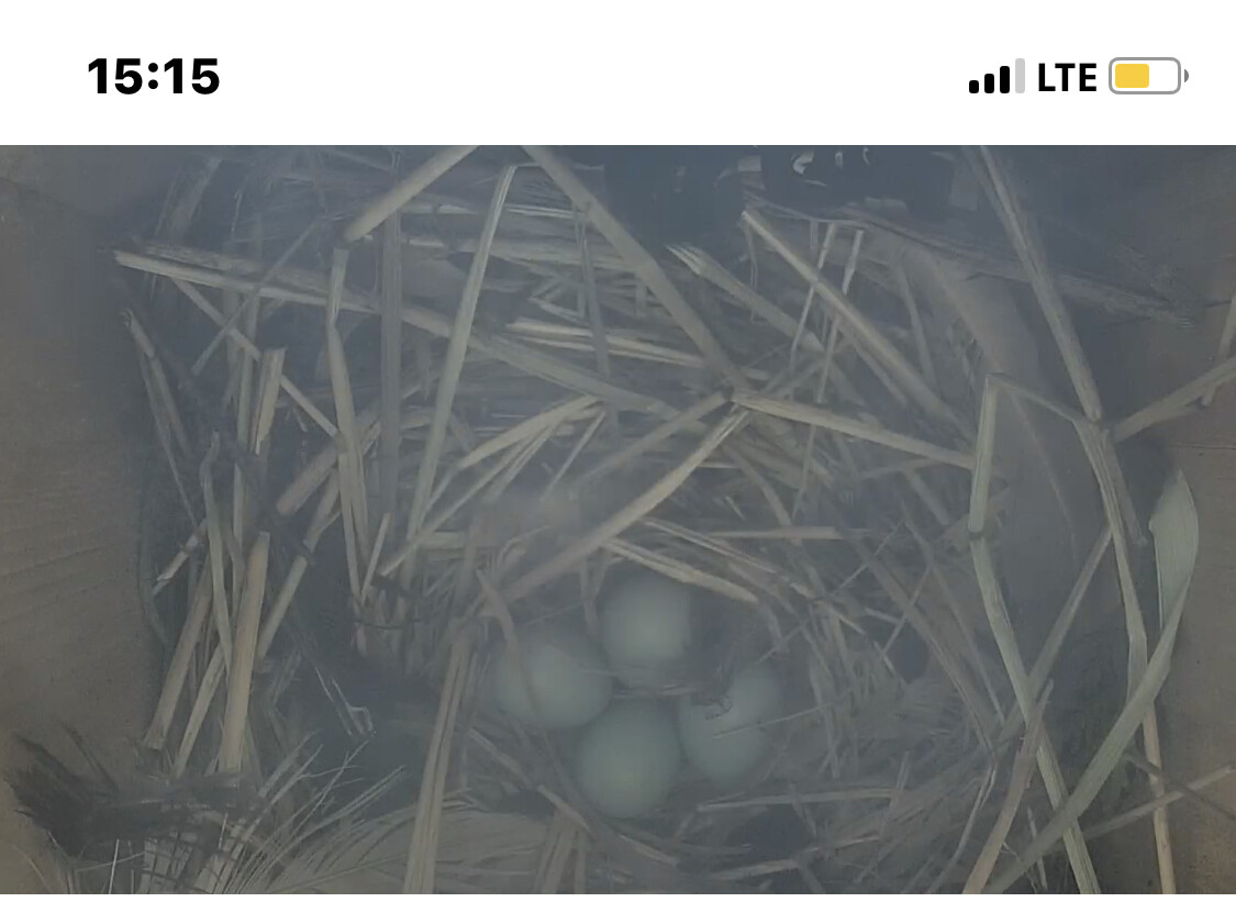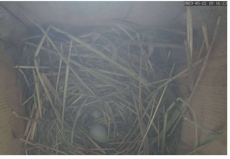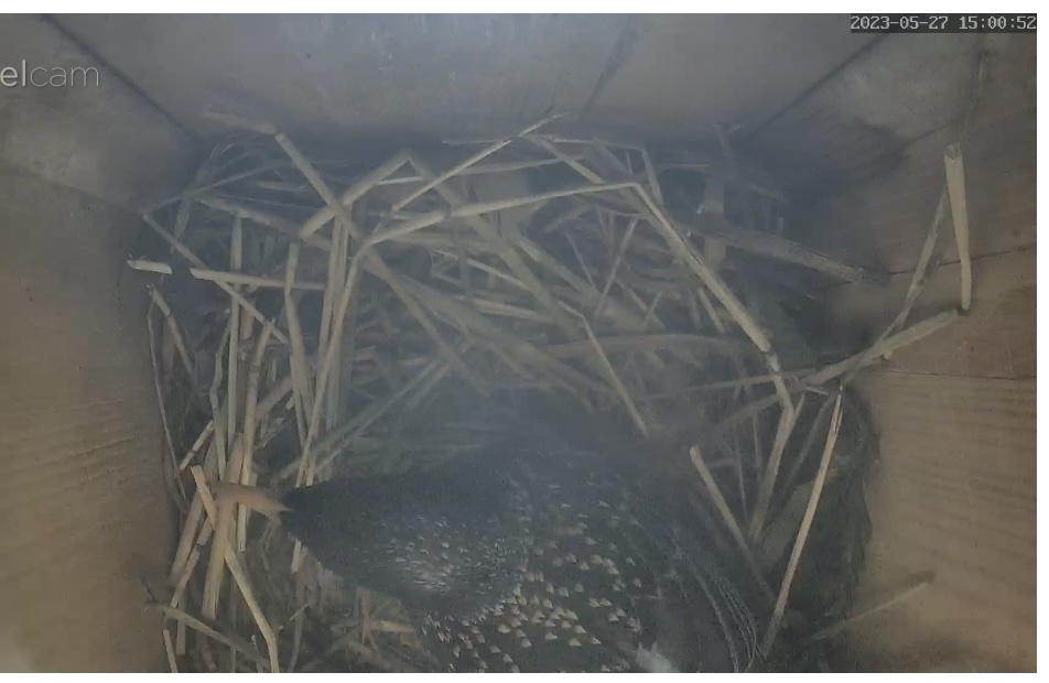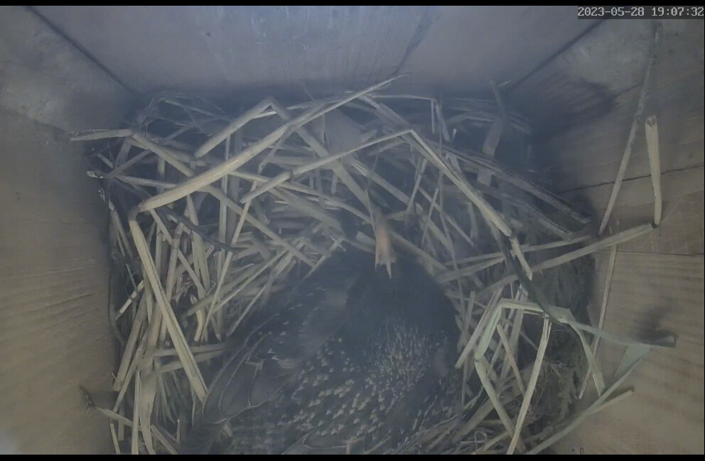 Die Sonne blendet im Staren Geburtshaus. Wenn ich richtig gesehen habe liegen schon 2 Eier im Nest?