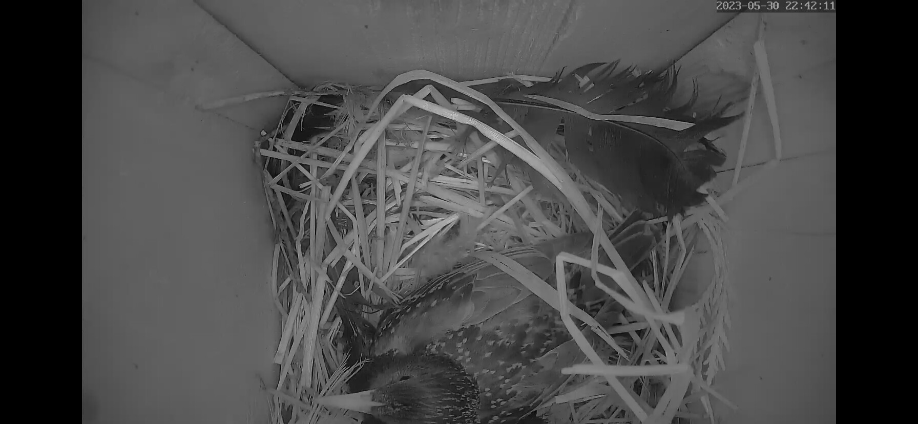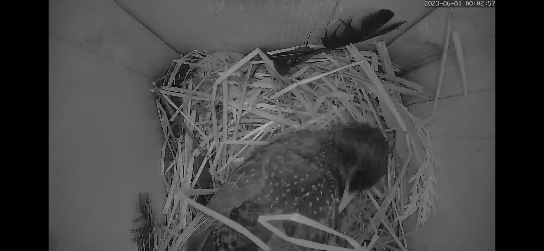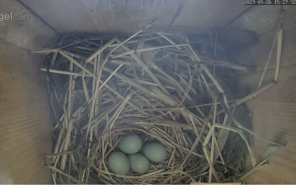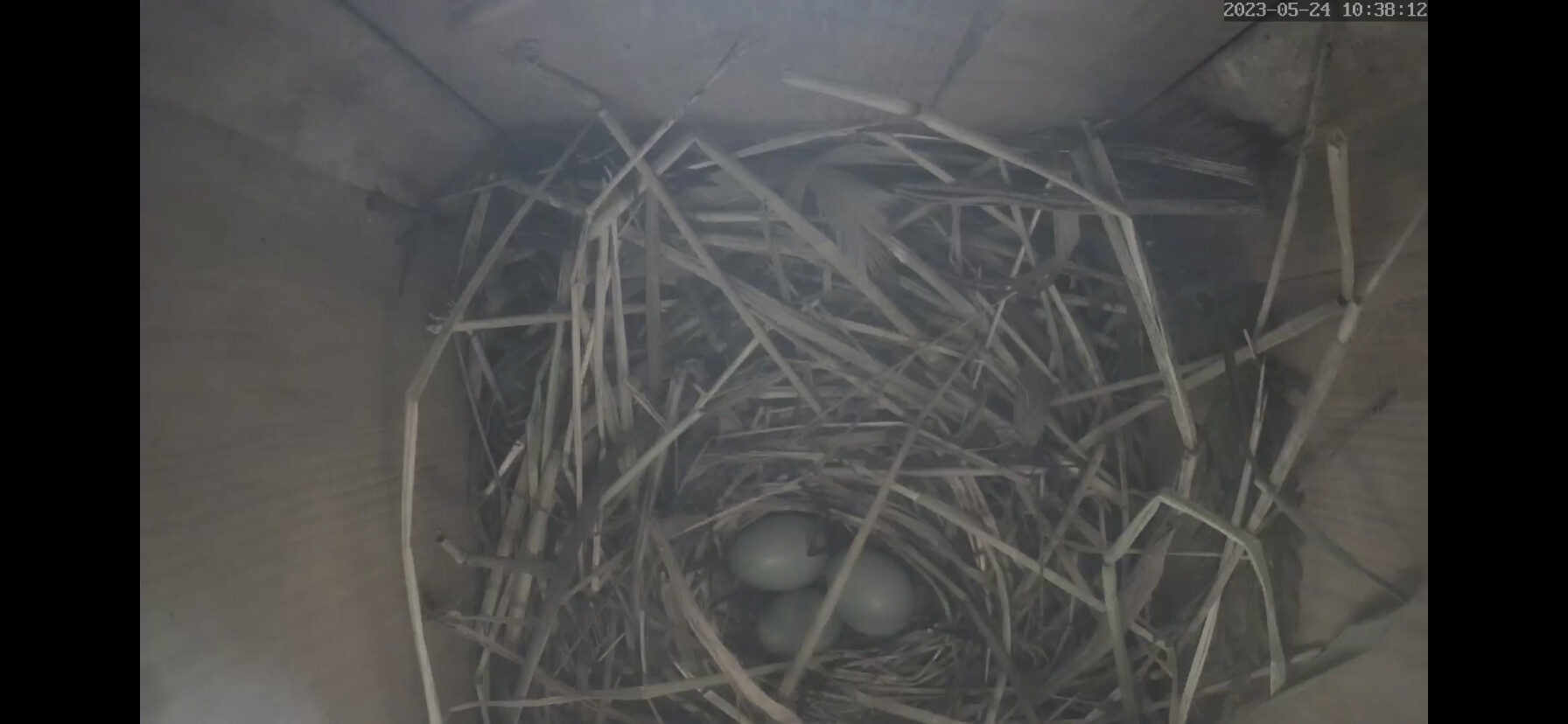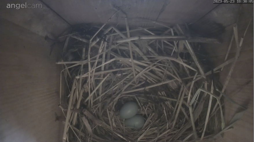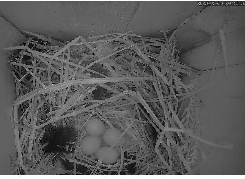 Die Sonne blendet im Staren Geburtshaus. Wenn ich richtig gesehen habe liegen schon 2 Eier im Nest?