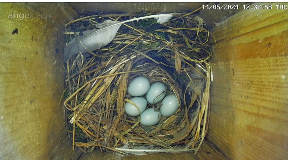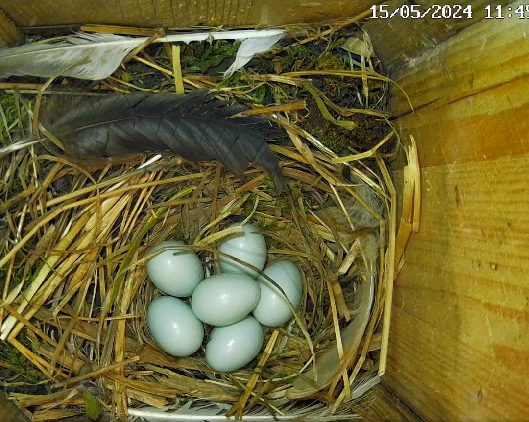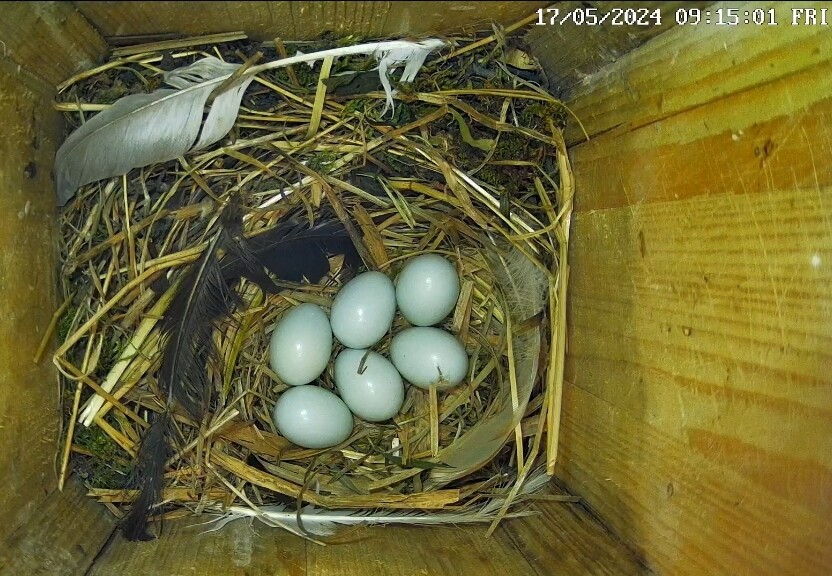Das ist doch herrlich. Ich würde mal vermuten, es bleibt bei den 5en. Bei mir daheim wird auch schon auf dem 2. Gelege gesessen