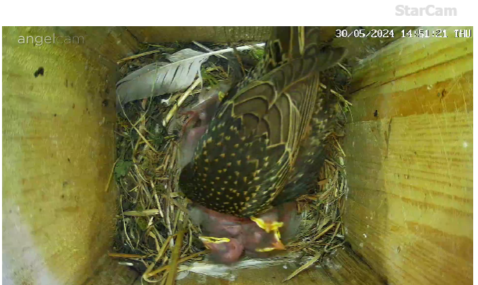Jetzt freuen wir uns über aktuelle Beobachtungen und hoffen, dass die kleinen Stare erfolgreich ausfliegen.