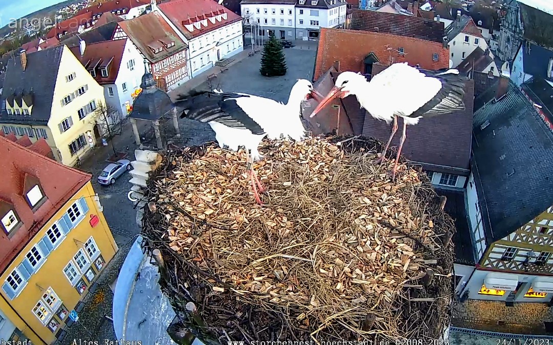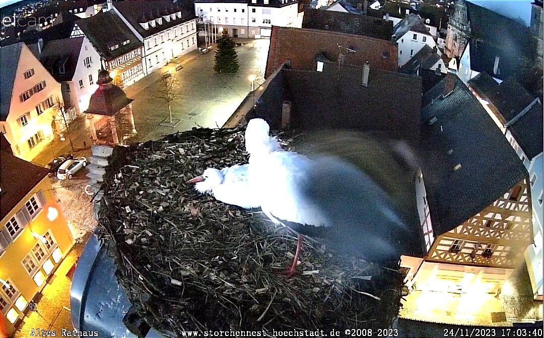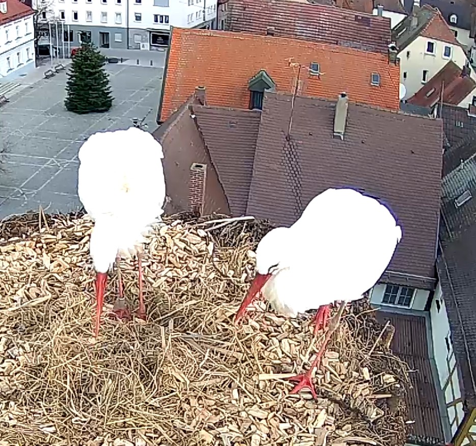 Das Video hab ich entdeckt - es zeigt, wie Frieda und Gerome zum 1. Mal im frisch hergerichteten Nest landen. Das Klappern mit den Schnäbeln könnte auch ein Ausdruck der Freude über die