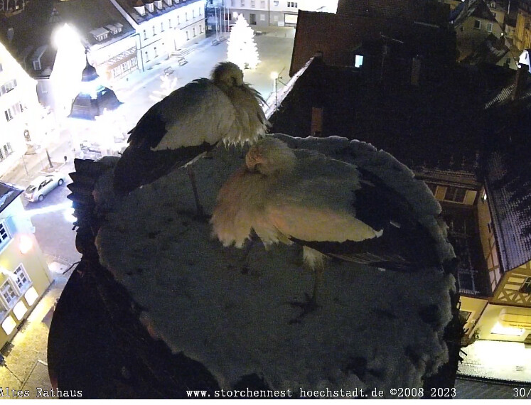 Um sieben Uhr in der Früh sind beide noch in ihrem Nest.