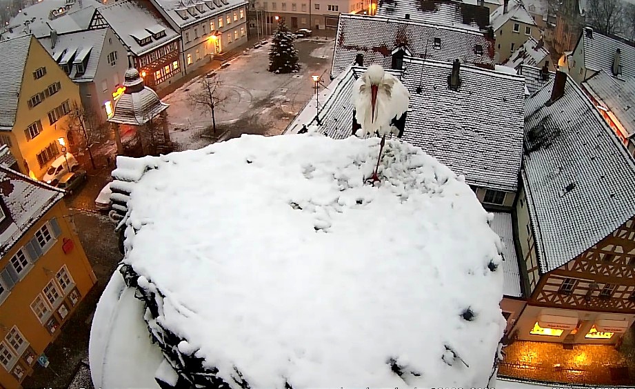 Montag Abend Schneefall und zumindest bisher nur Frieda vor Ort: