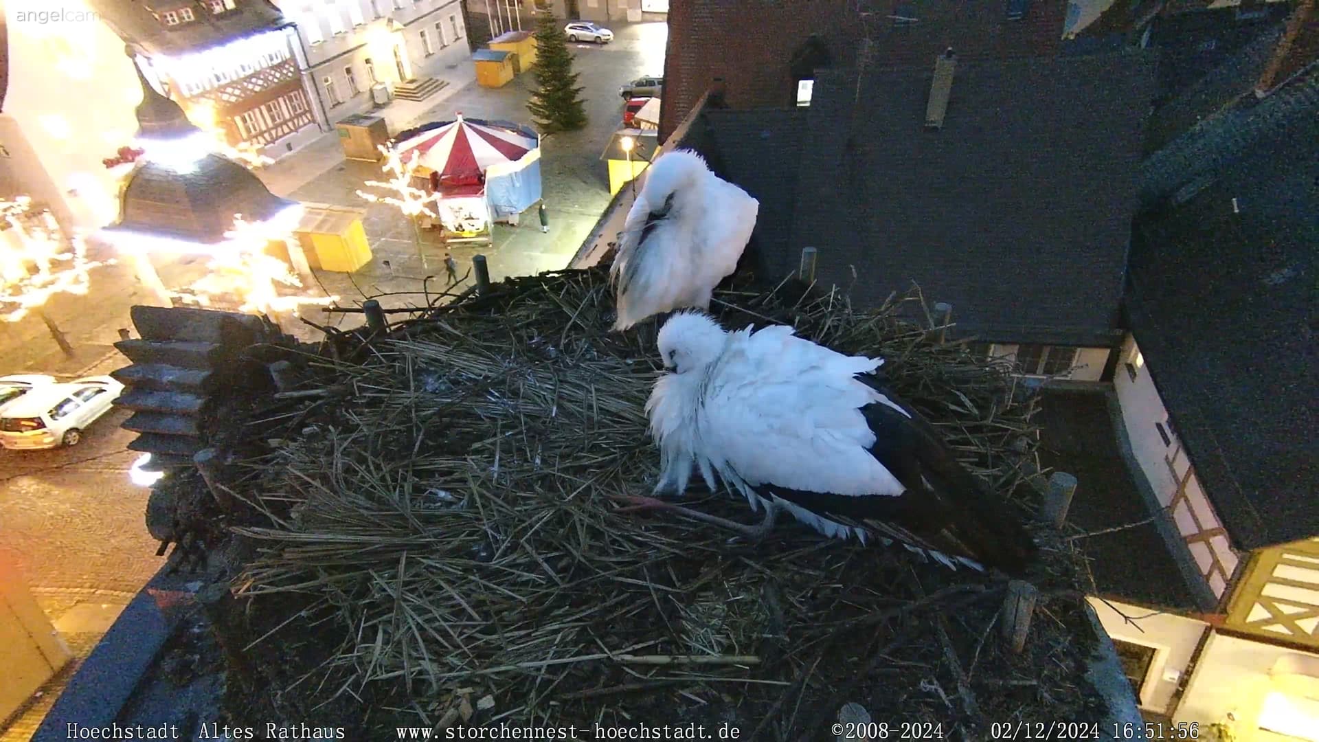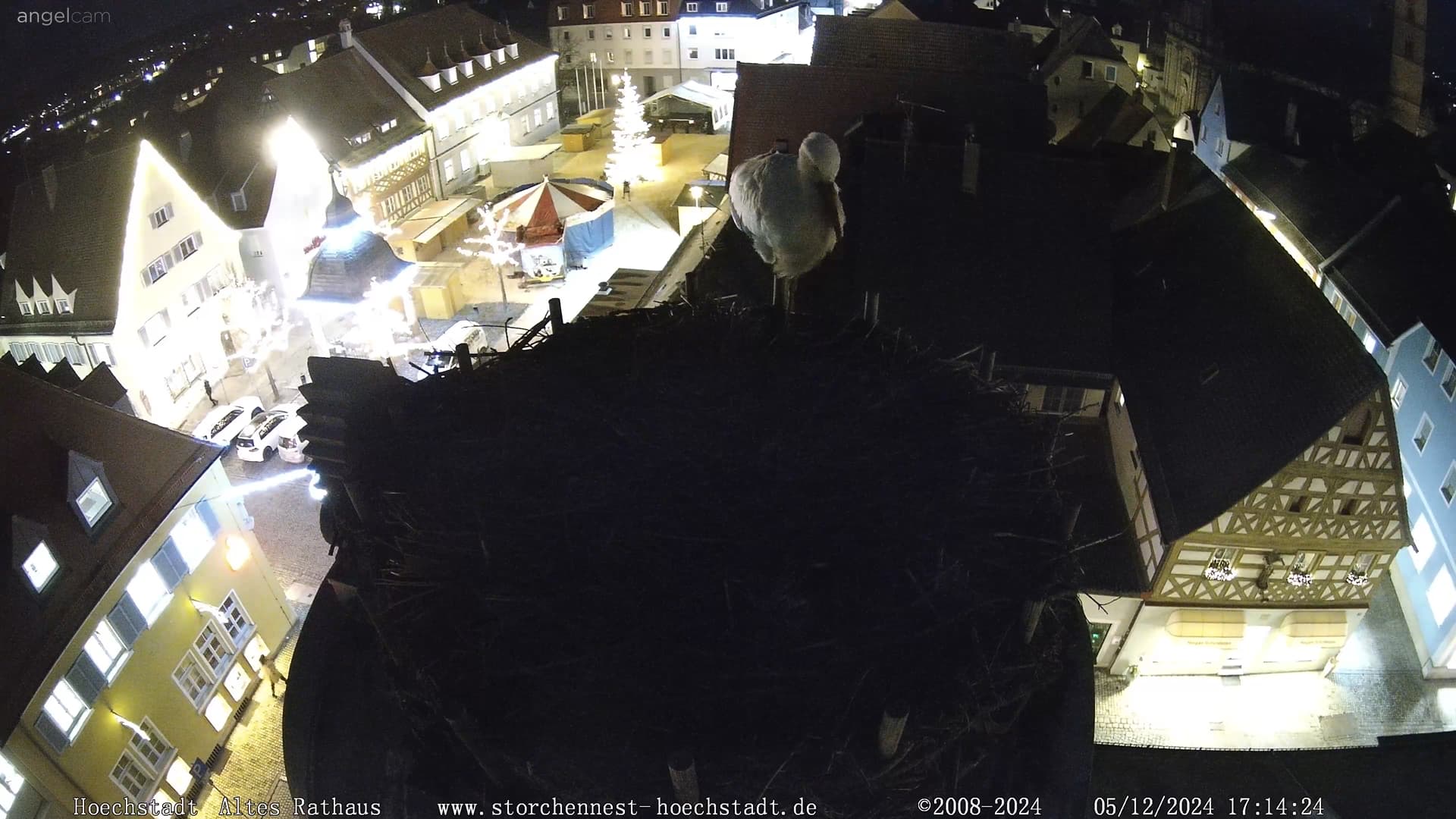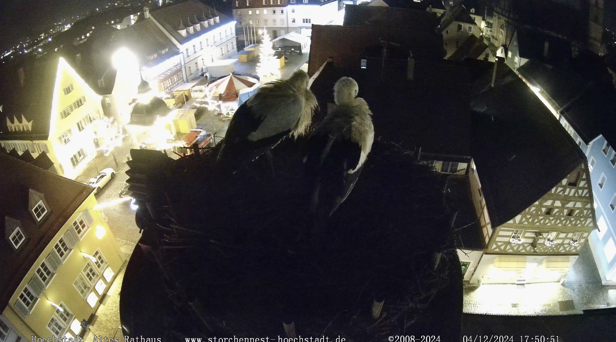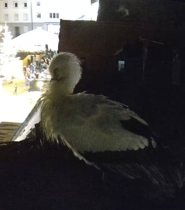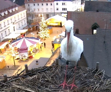 Am Abend wurde der Weihnachtsmarkt eröffnet. Das Storchennest ist im Dunkeln, Frieda und Gerome sind anscheinend geflüchtet. Vielleicht war es ihnen auch nur zu windig da oben.