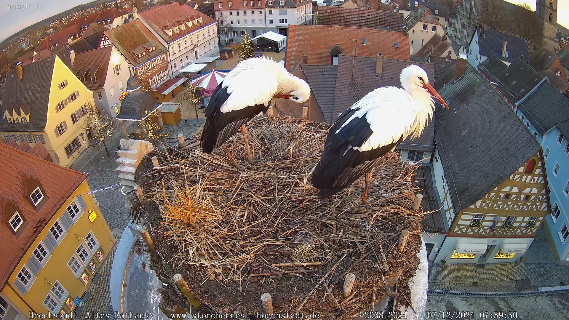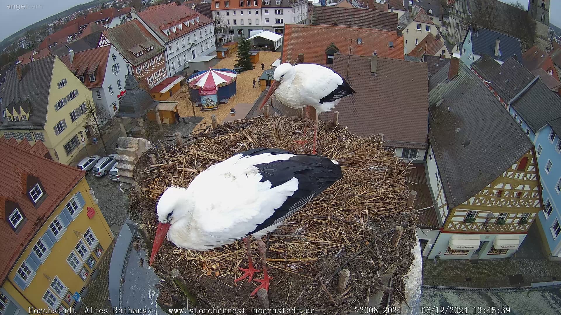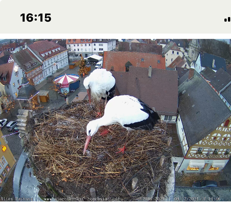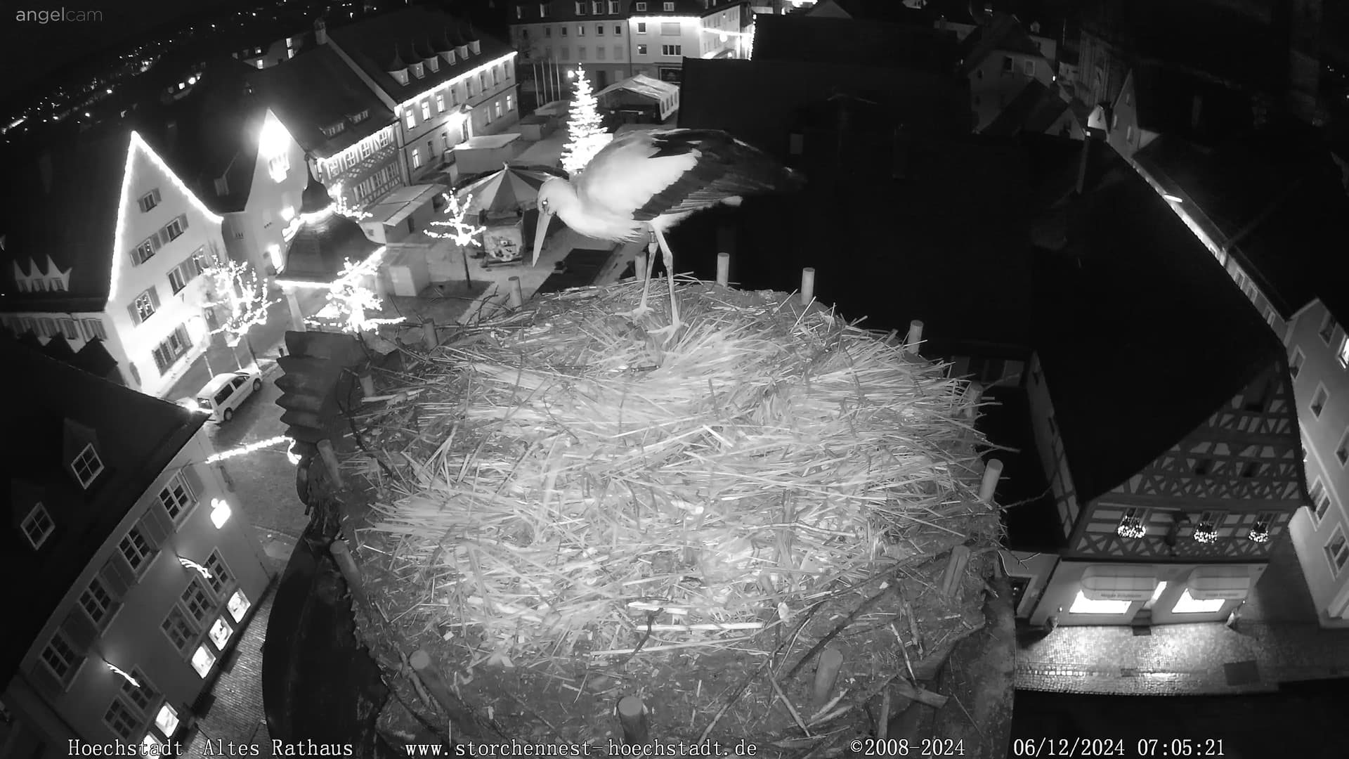 Am Abend wurde der Weihnachtsmarkt eröffnet. Das Storchennest ist im Dunkeln, Frieda und Gerome sind anscheinend geflüchtet. Vielleicht war es ihnen auch nur zu windig da oben.