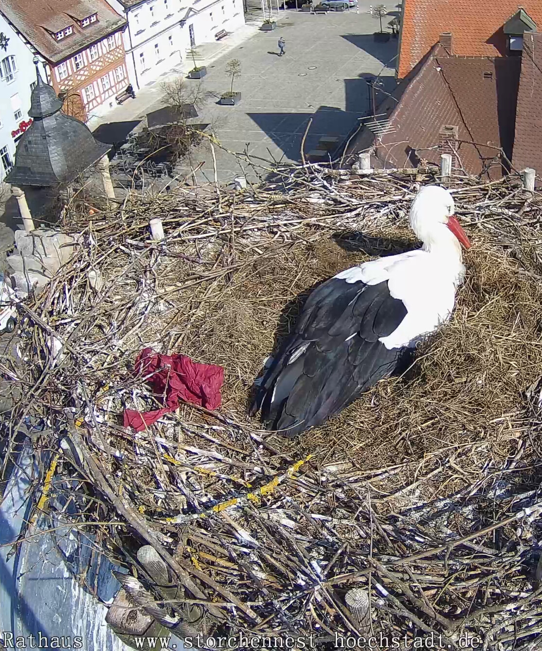 Beide haben anscheinend gerne Fremdmaterial im Horst. Bin gespannt, zu was das gut ist.