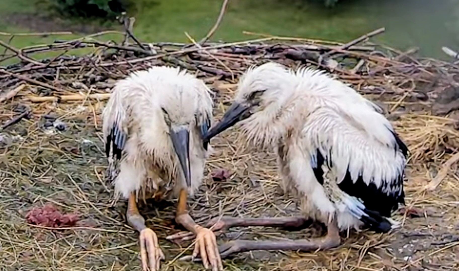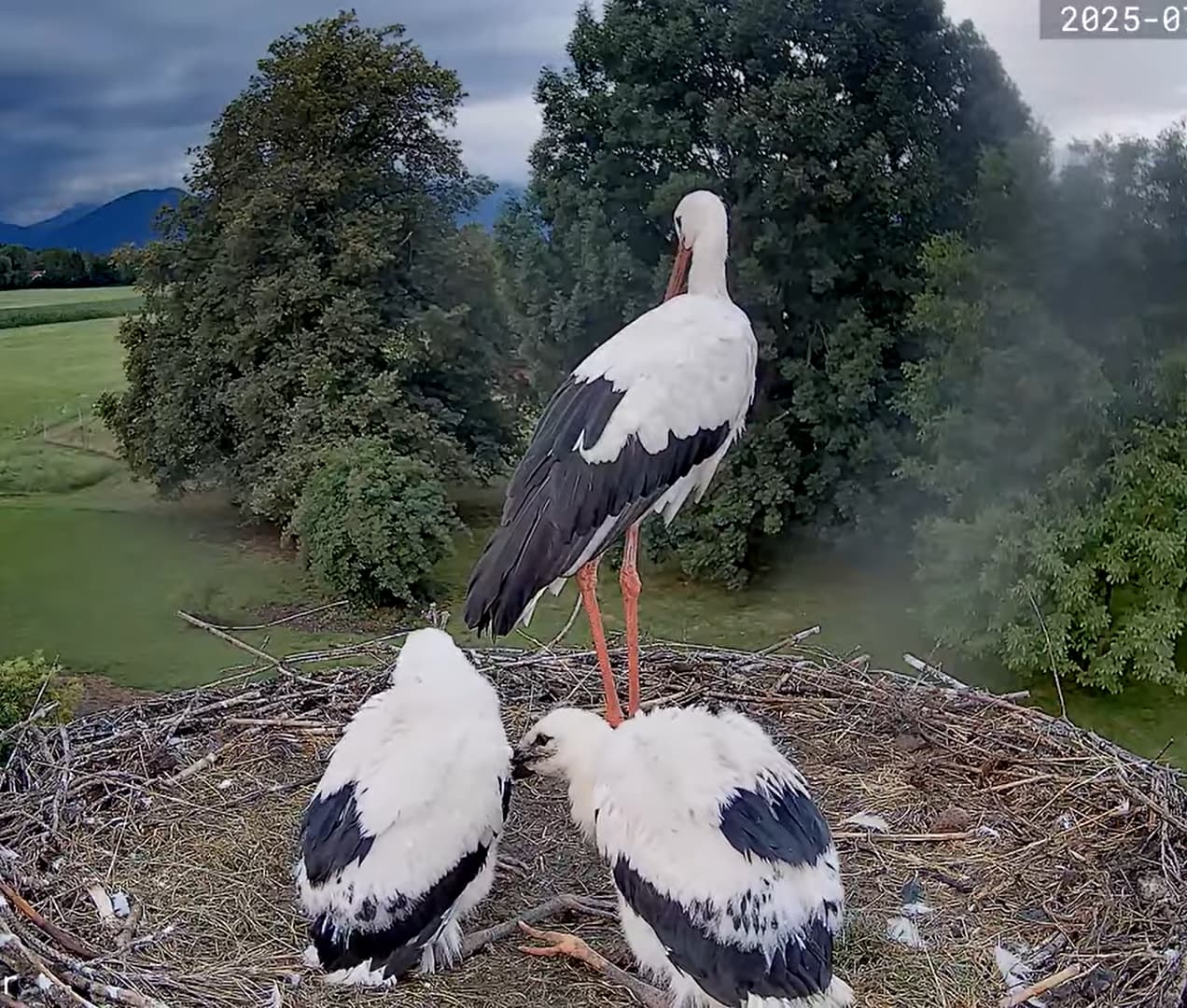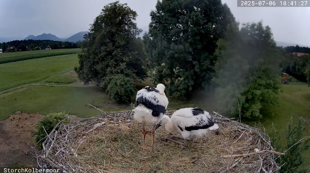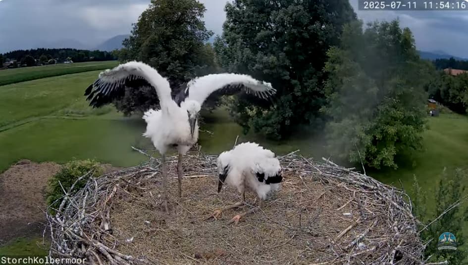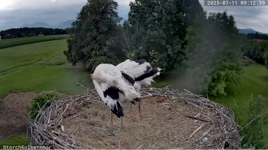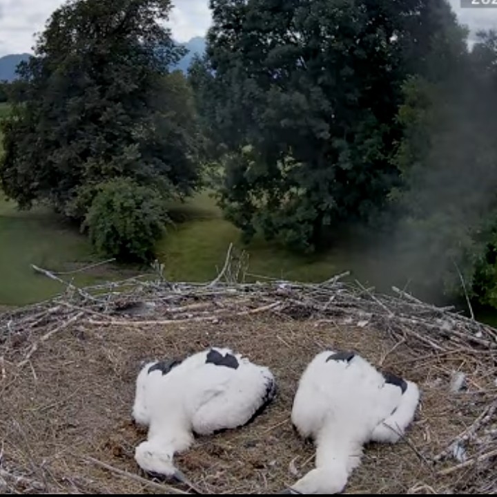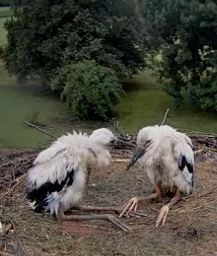 Die beiden Kaira und Alexander haben sich erst am 25. April erstmals zusammen gefunden, und dann hat Kaira am 28. April das erste Ei gelegt, das ging absolut rasant, am 30. April dann das zweite. Sie waren also schon ein bissl später dran, als andere Störche, aber dafür , dass es ein neuer Horst und ein neues Paar ist, ging es unglaublich schnell. Die beiden Jungstörche sind am 1. und 2. Juni geschlüpft, zwei weitere, die noch danach kamen, haben es leider nicht geschafft. Aber diese beiden hier legen rasantes Wachstum an den Tag und es spricht derzeit nichts dagegen, dass sie große Störche werden.