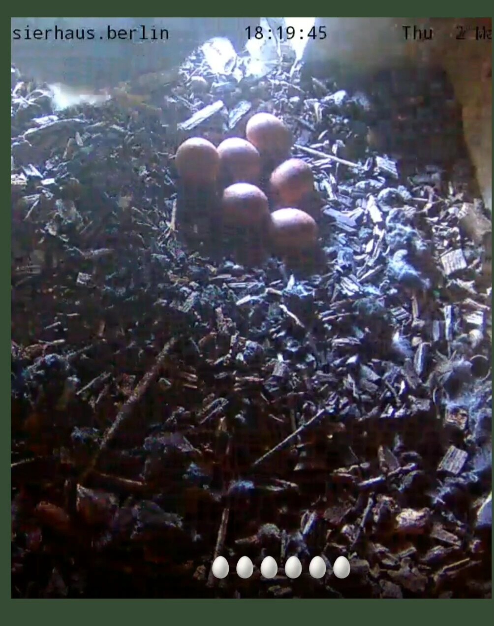 Gerade laufen am unteren Rand des Bildes 6 Eier durch ![]()