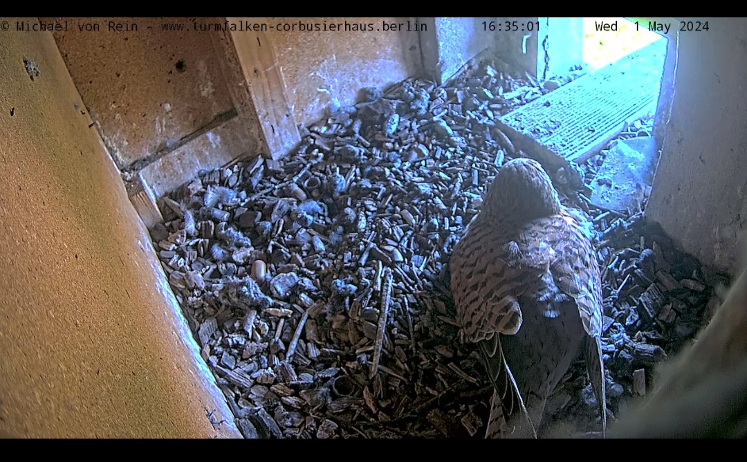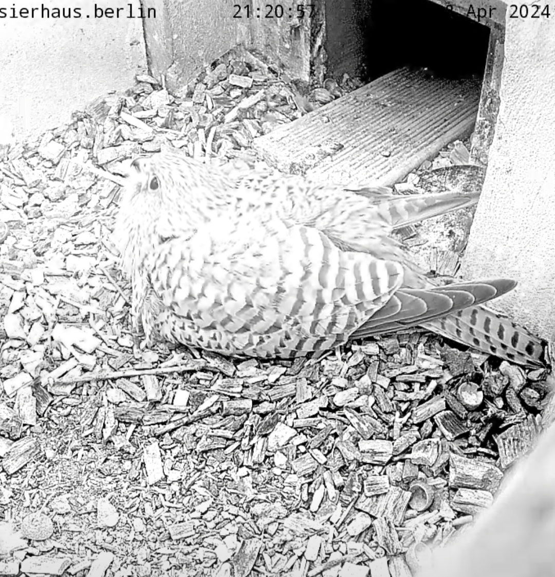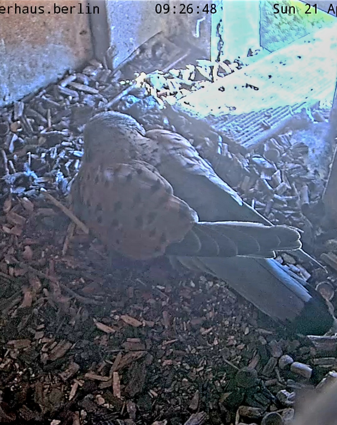 8:06 - aktuell sitzt die Turmfalkin auf dem Gelege, sieht alles gut aus soweit.
