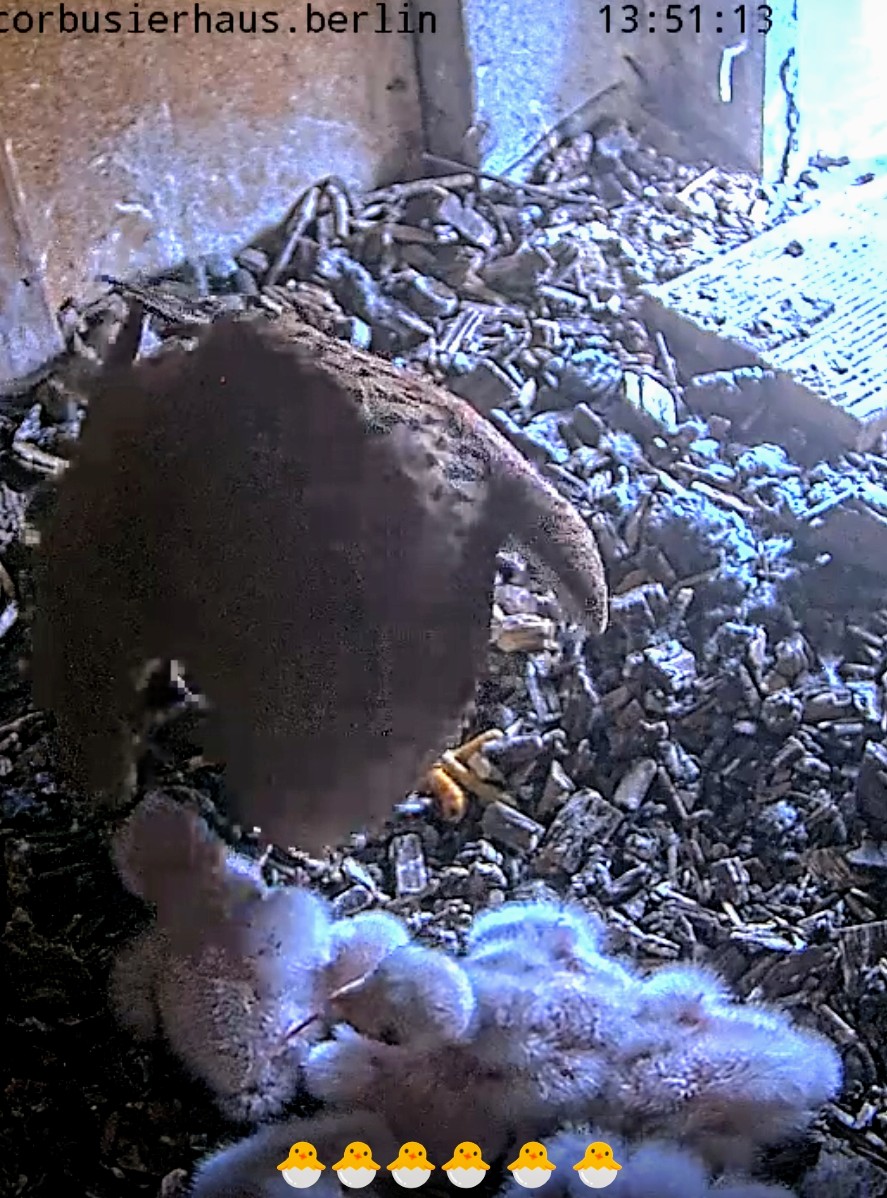 Nach der Anzahl der Küken auf dem Kamerabild sind es nun sechs Küken.