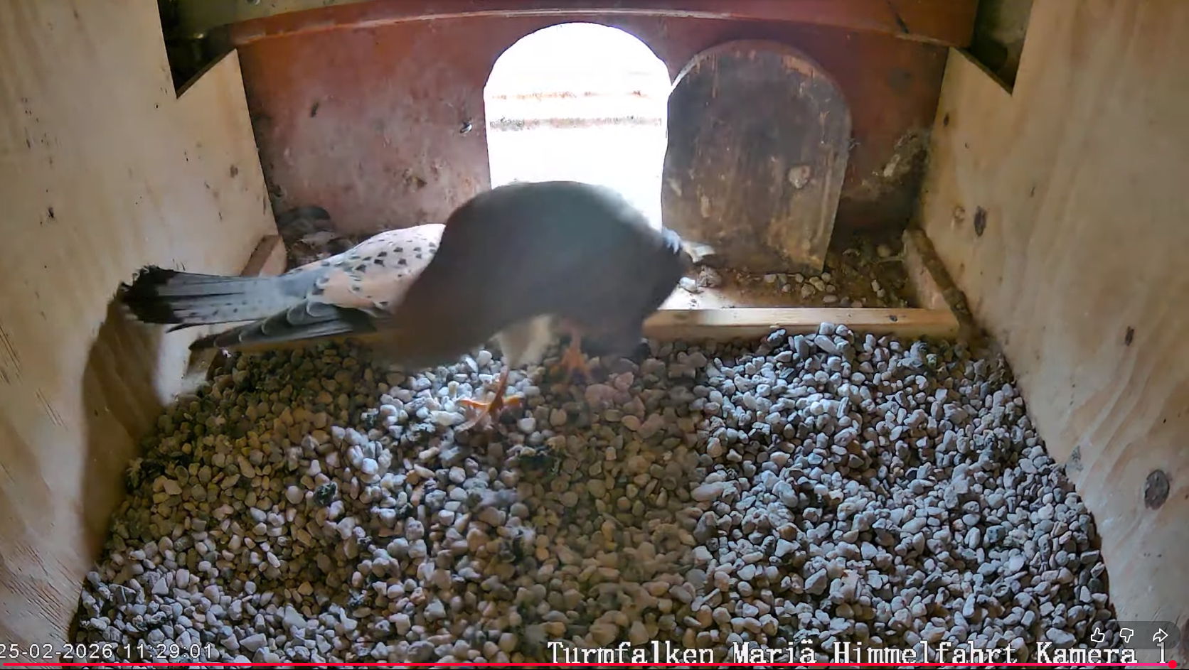 Hier https://www.youtube.com/@Turmfalken-Neunkirchen/videos haben wir interessante Szenen als aufgezeichnete Videos hinterlegt. Die beiden Turmfalken haben heuer schon Nistmulden gedreht, die Futterübergabe läuft einwandfrei.