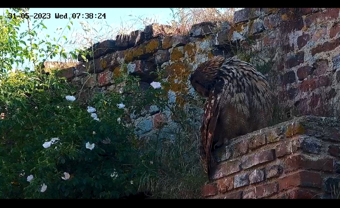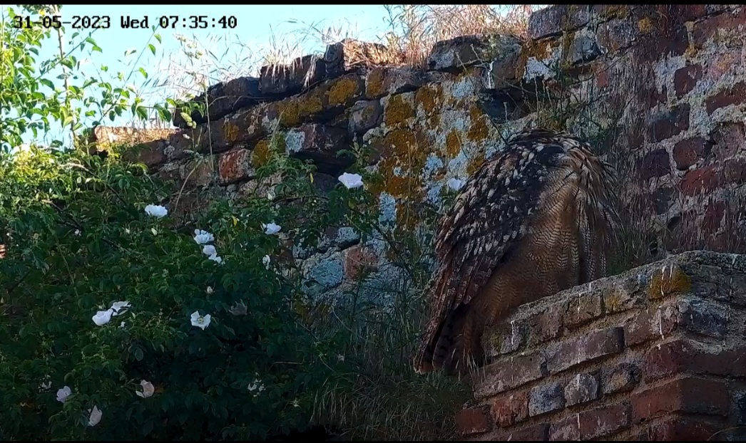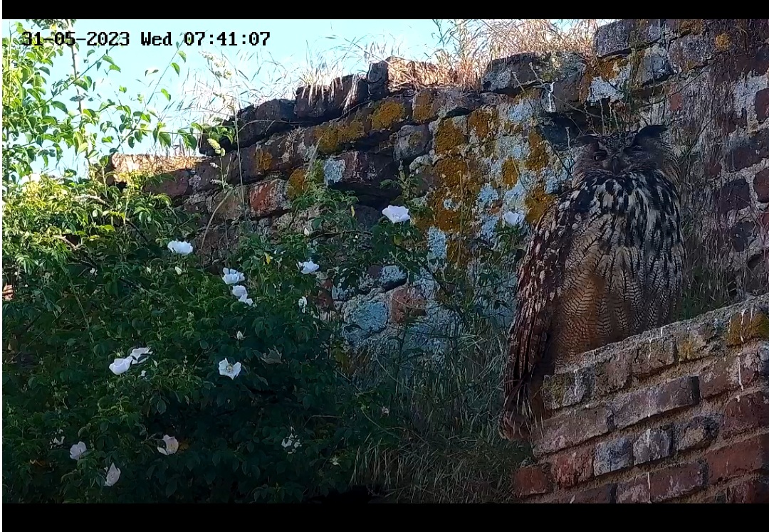 Ich dachte schon, die Kamera zeigt uns heute als Uhu-Ersatz die schön blühende Wildrose.