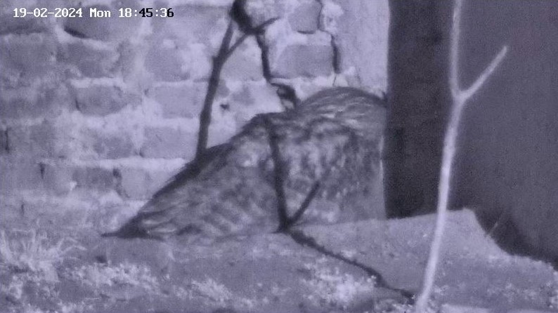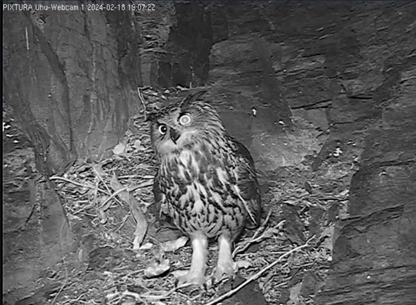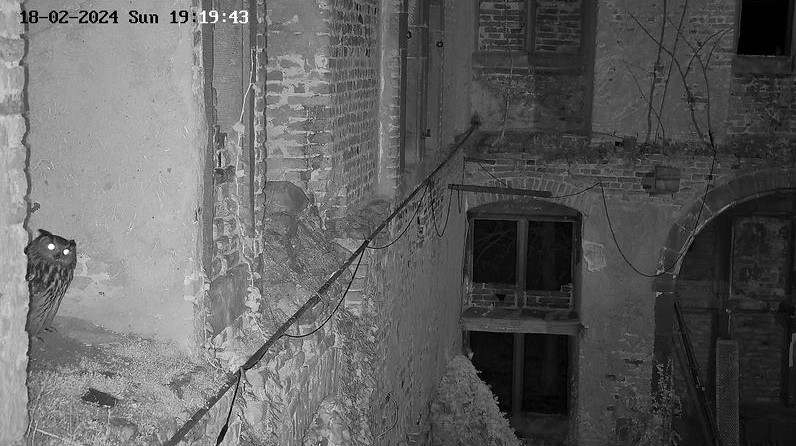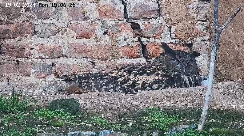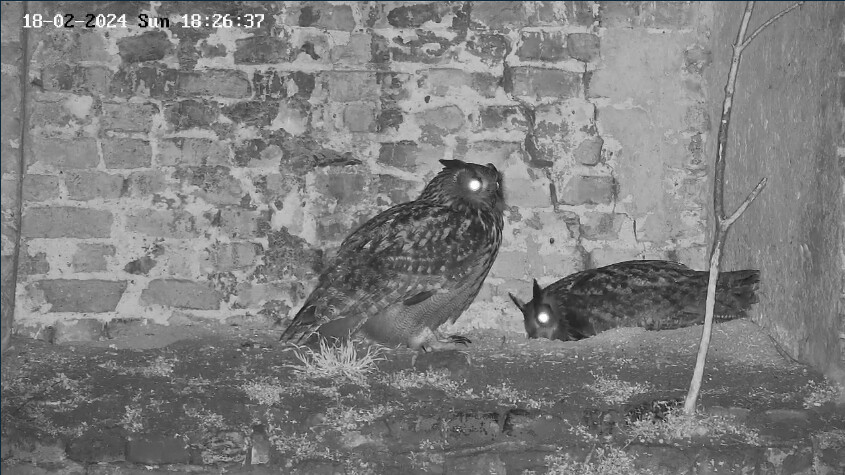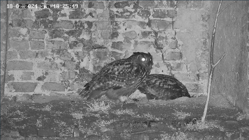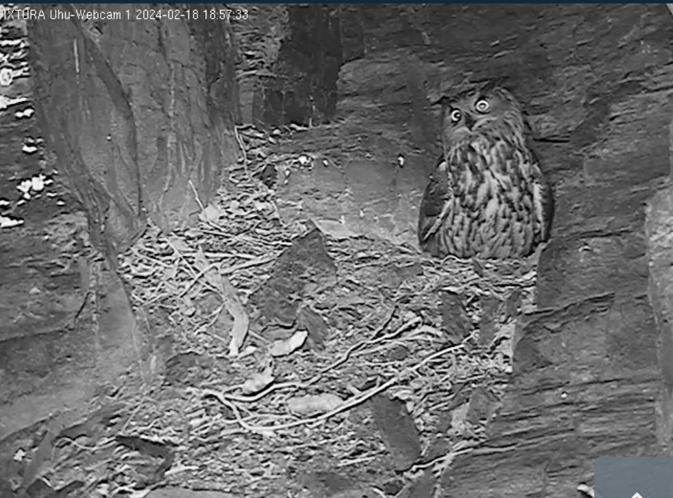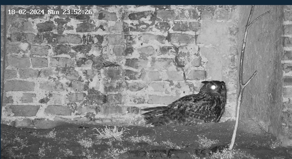 Super entdeckt @DorisS. Die Kamera haben sie gut postiert. Dann können wir auch besser beobachten, wenn einer der Uhus in die Nischen auf der linken Seite fliegt. Ich hatte schon die ganze Zeit darauf gewartet, dass Kamera 4 in Betrieb geht. Im Moment scheinen Kamera 3 + 4 noch Störungen zu haben. Das System muss vermutlich erst ‚eingefahren‘ werden. Ein kleiner Bug