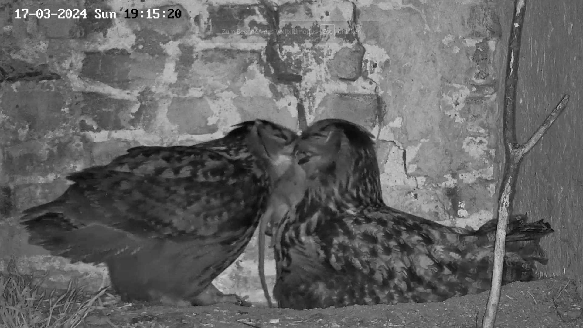 Das nächste Mal beobachtest dann Du etwas spannendes @Raikra . In der Ruine kam gerade wieder der Tristan- Lieferdienst und drückte Isolde mal wieder eine Ratte in den Schnabel. Ich finde es immer wieder amüsant, wenn sich die Uhu- Damen dann abwenden. Ich würde mir allerdings ebenfalls keine Ratte … aber lassen wir das (wird sonst unappetitlich)!