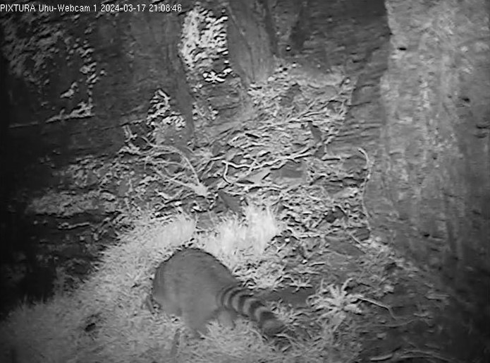Das habe ich nicht gesehen @DorisS , aber gestern kurz vor 12.00 h hörte ich wieder mindestens einen Falken. Cam 1 zeigte die Galerie entlang. Dann sah ich Federn (?) von oben nach unten durch das Blickfeld schweben. Als ich das realisiert hatte, war es für einen Screenshot leider schon zu spät. Dann hat der Falke vermutlich auch gestern schon Beute gemacht. Scheint ein gutes Jagdgebiet für die Falken zu sein (wenn nur die Waschbären nicht wären…). Vor den Uhus müssen sie sich auch in Acht nehmen.