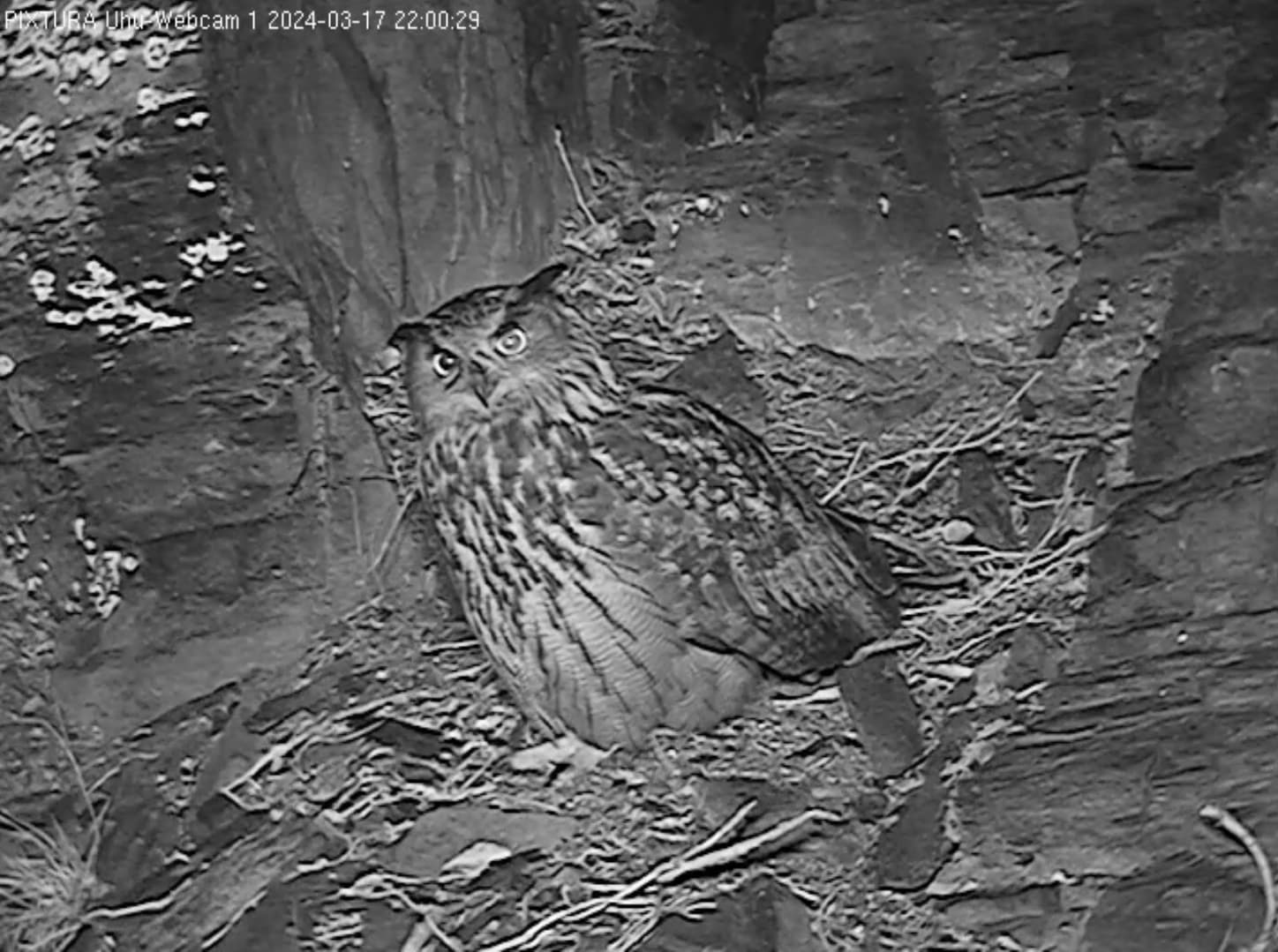 In der Ruine fliegen auch die umher. Ich habe einmal nachgesehen: Das erste Ei hat sie in der Nacht vom 18.02. zum 19.02. gelegt. Nach 34 Tagen Brutzeit wäre der voraussichtliche Schlupftag am kommenden Samstag / Sonntag! Das ist ja nicht mehr lange hin! Ich bin schon gespannt .