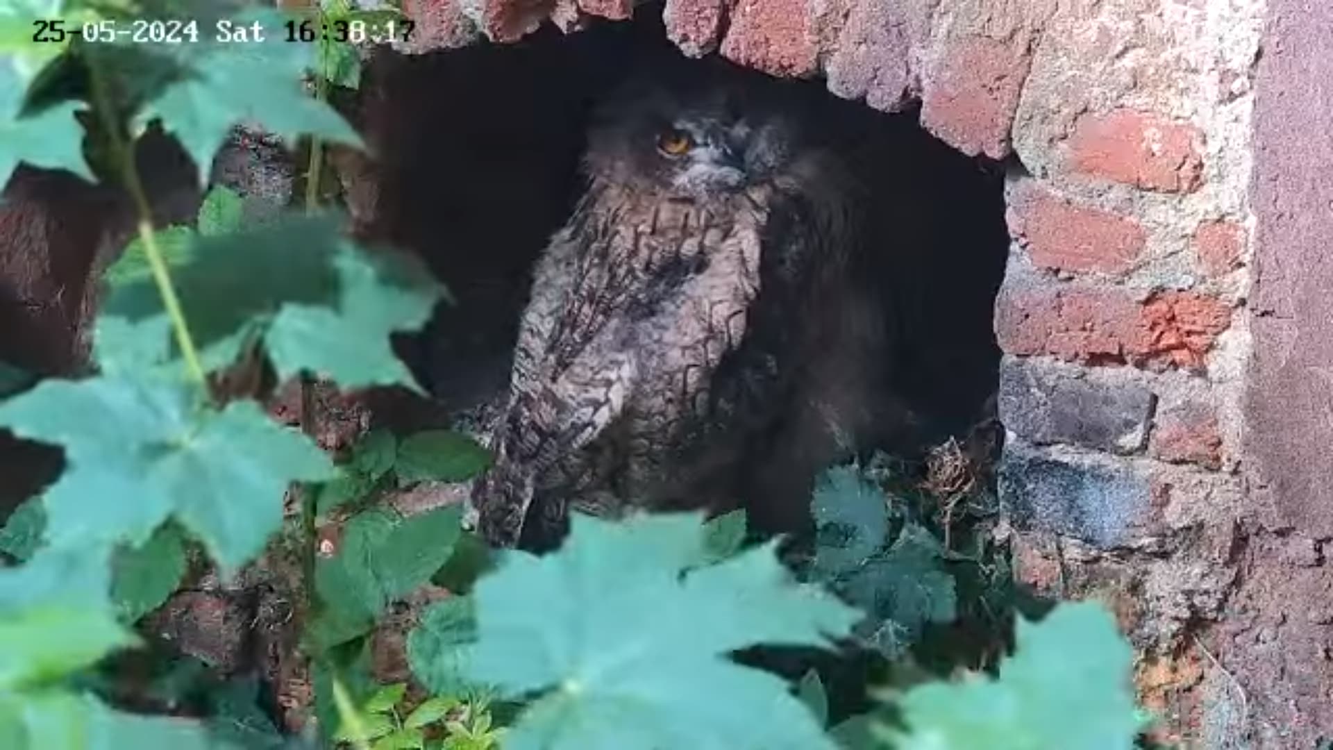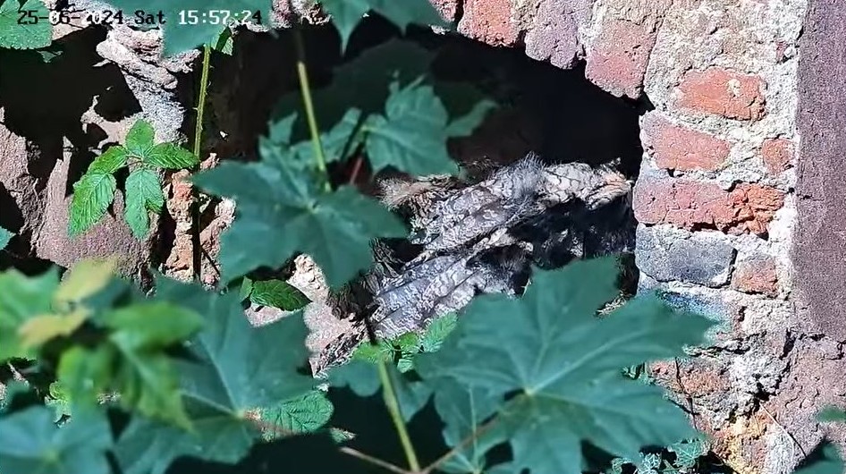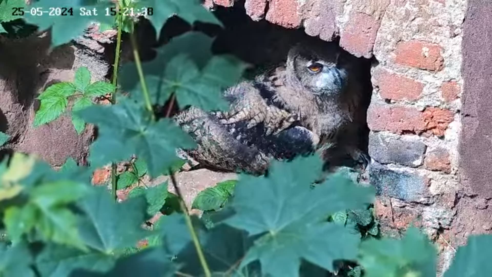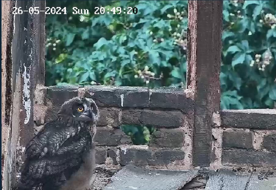 Die Junguhus werden immer geübter und aus Geflattere wird nun langsam Fliegen. Mini erkundet die hochgelegenen Fensternischen, hat auch eine weitere Vorratskammer von Isolde entdeckt und schaut genau in die Cam 3. ![]()