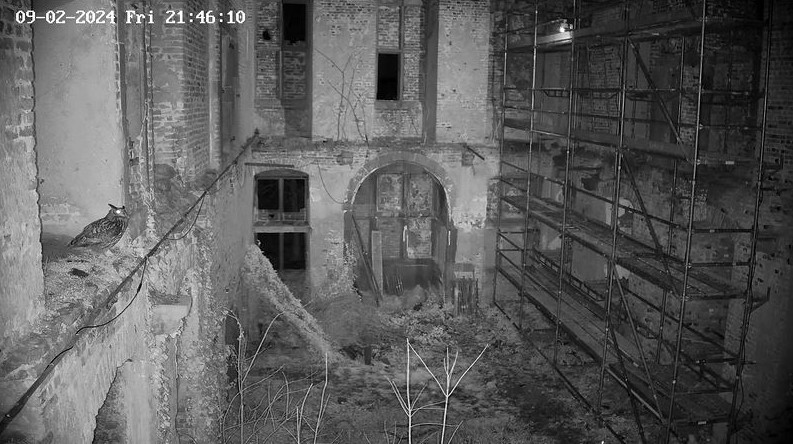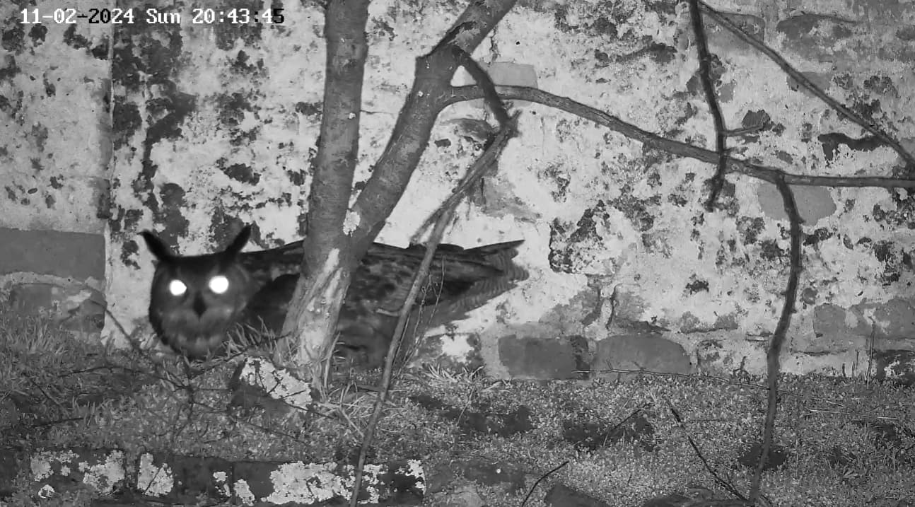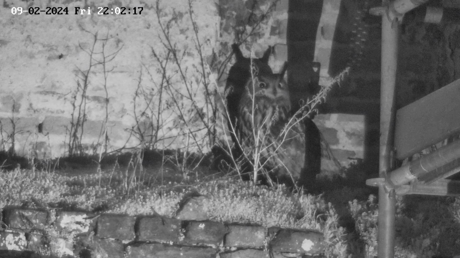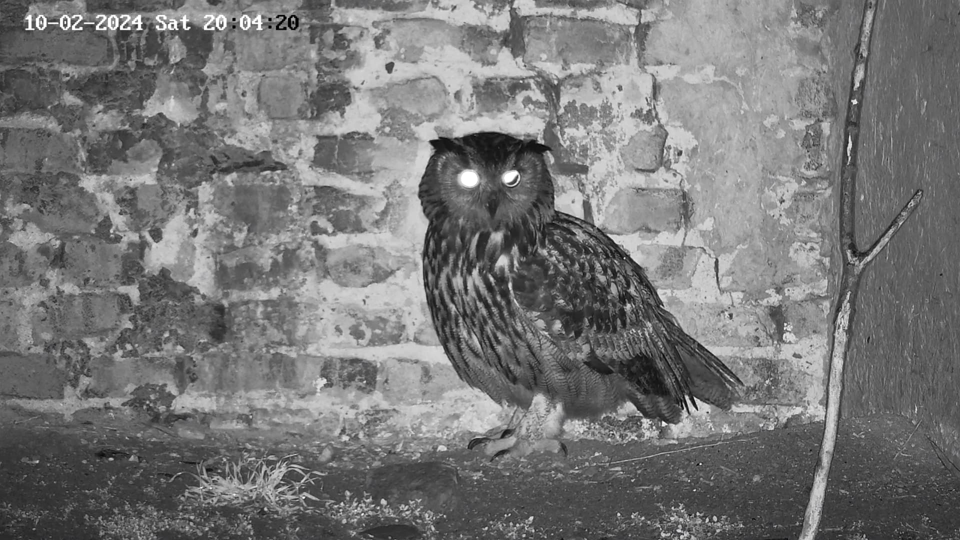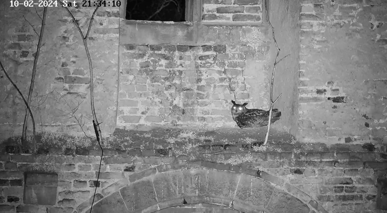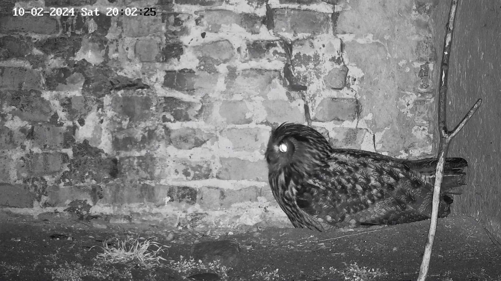 Wie gestern, ist im Ahrtal vor Kamera 2 wieder zuerst ein Uhu zu sehen.