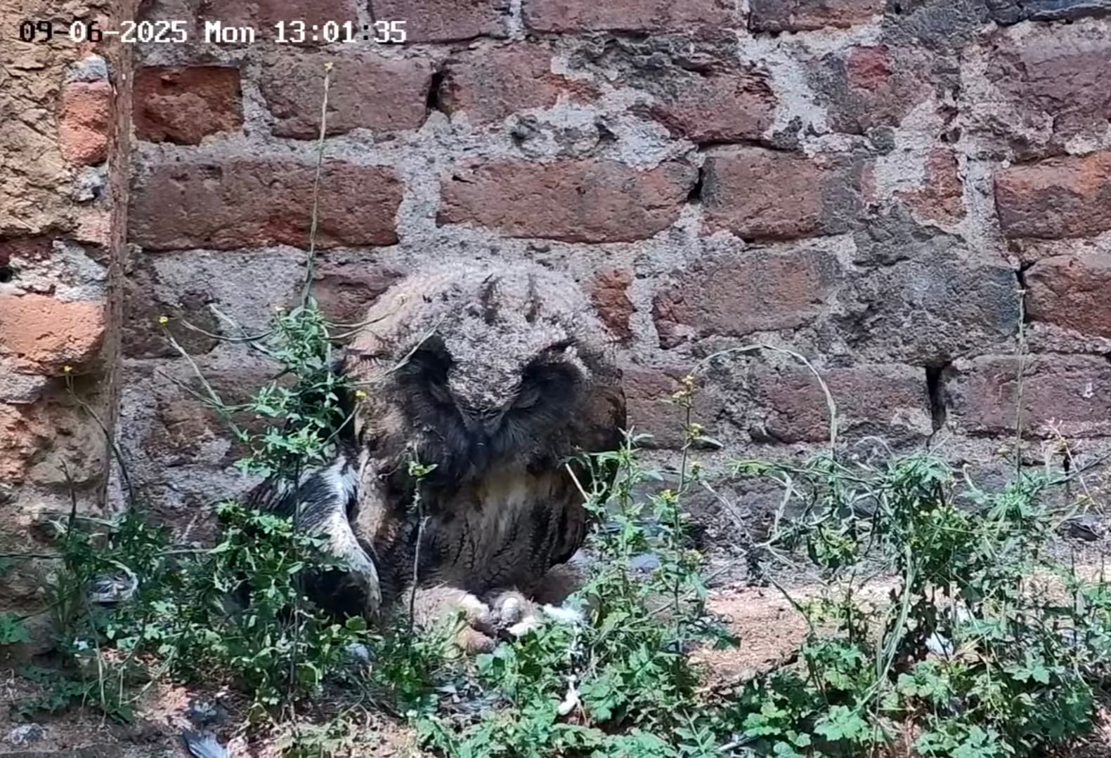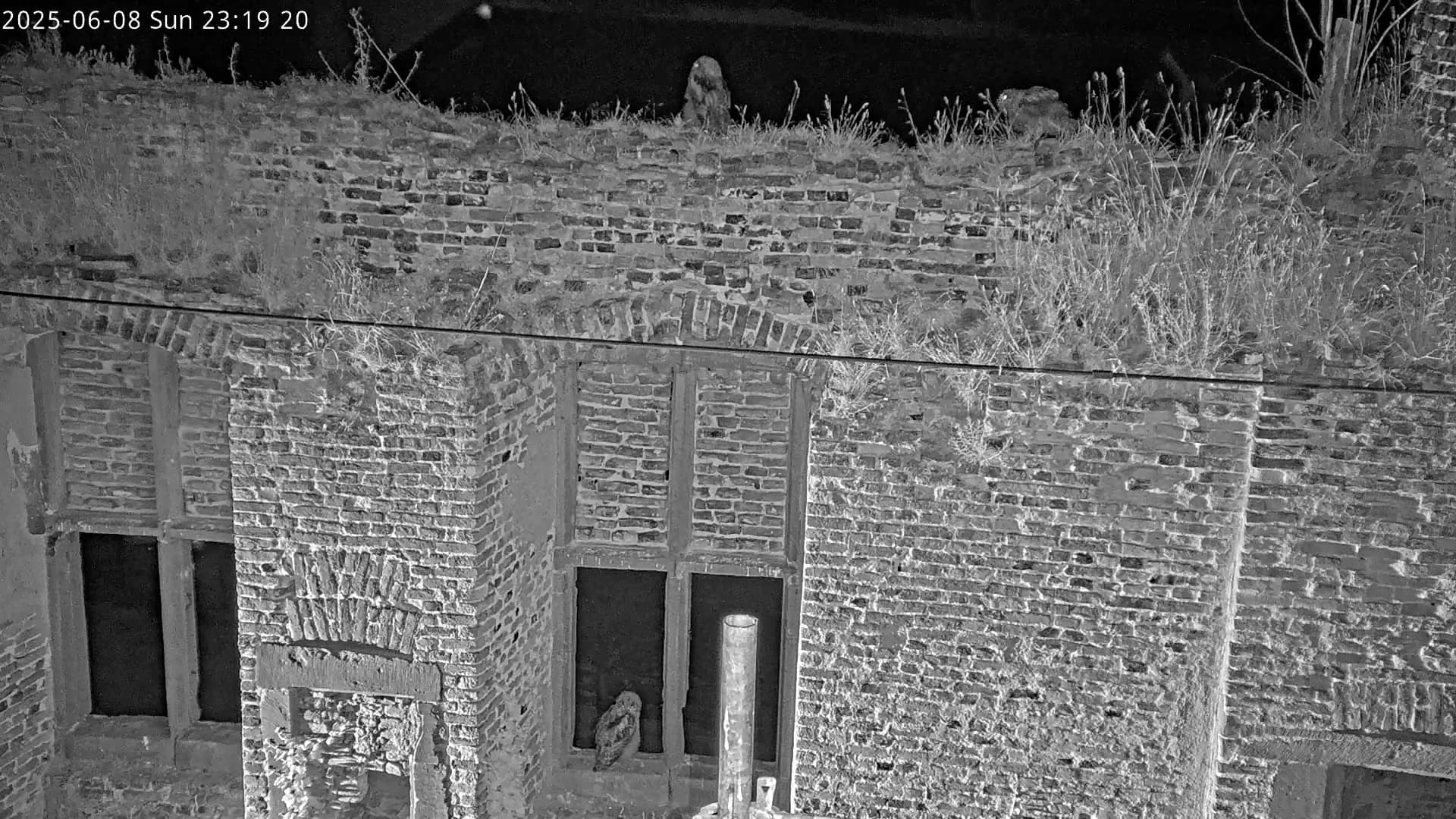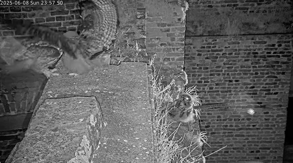 Isolde bringt ebenfalls Beute. Einer der Junguhus sitzt auch im Fenster des großen Turmzimmers.