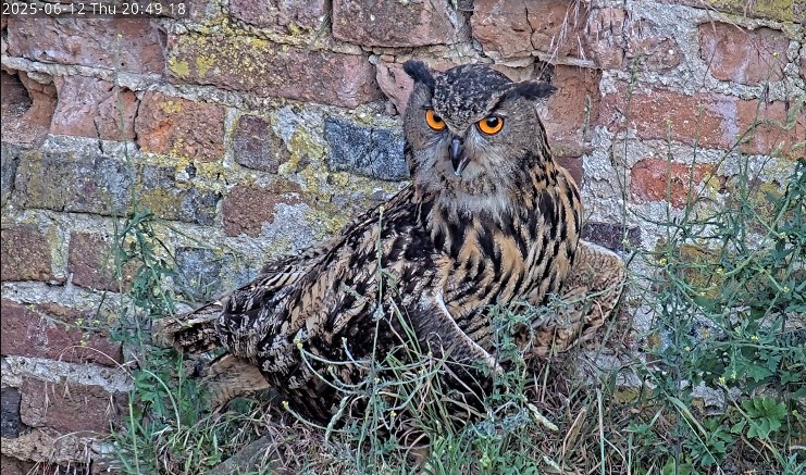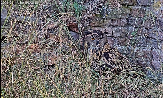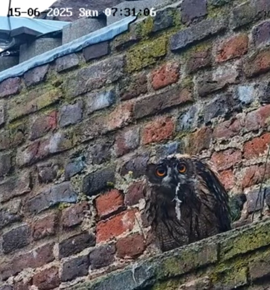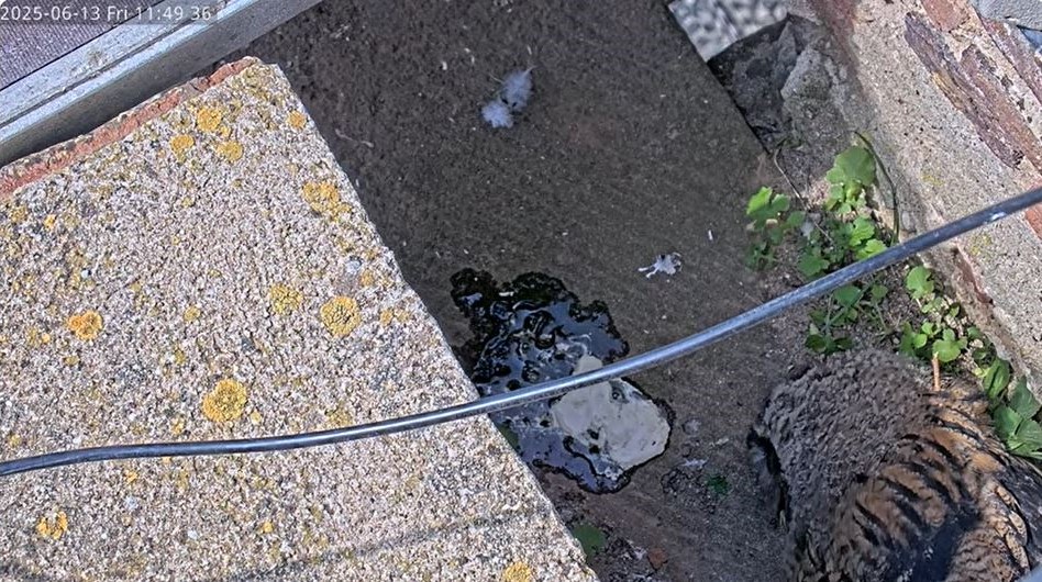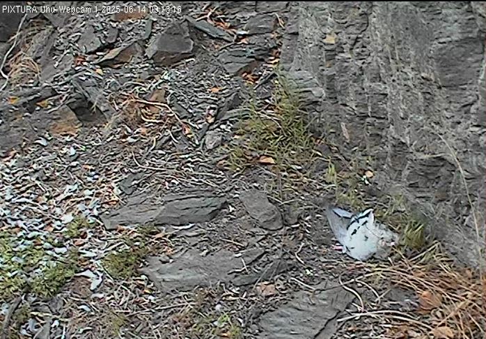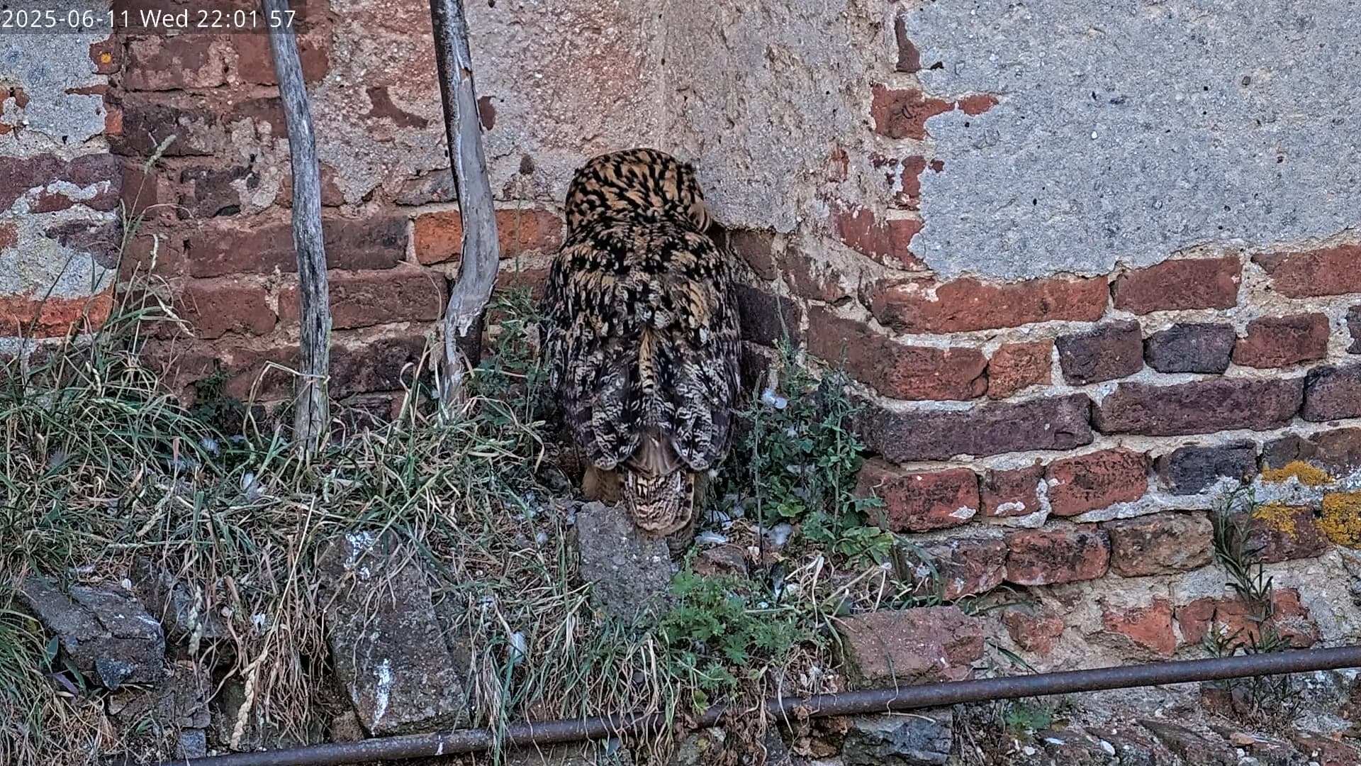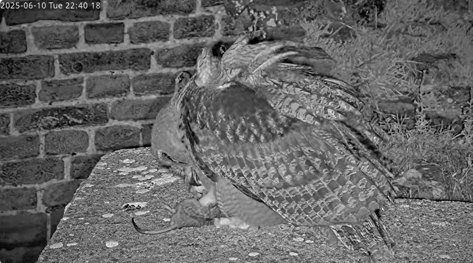 Isolde war später in der Brutnische zu sehen, als sie an einem - vermutlich frisch erbeuteten - Igel fraß.