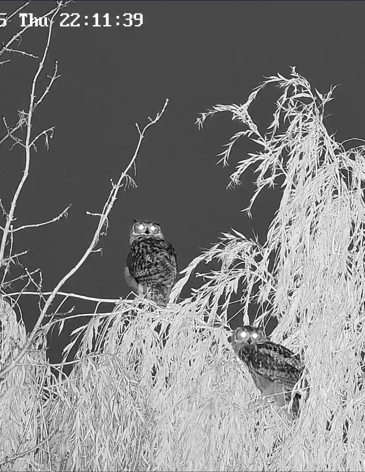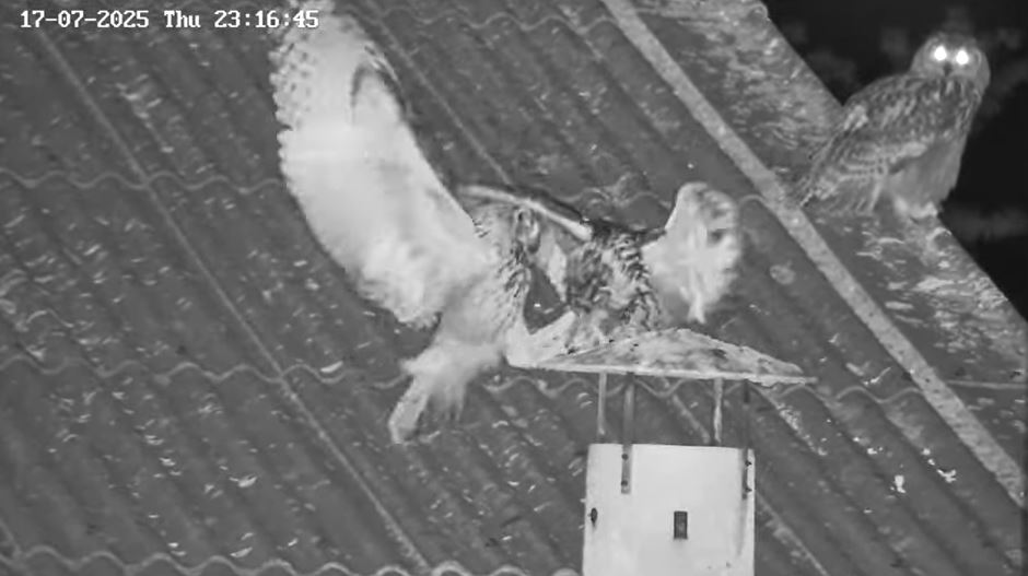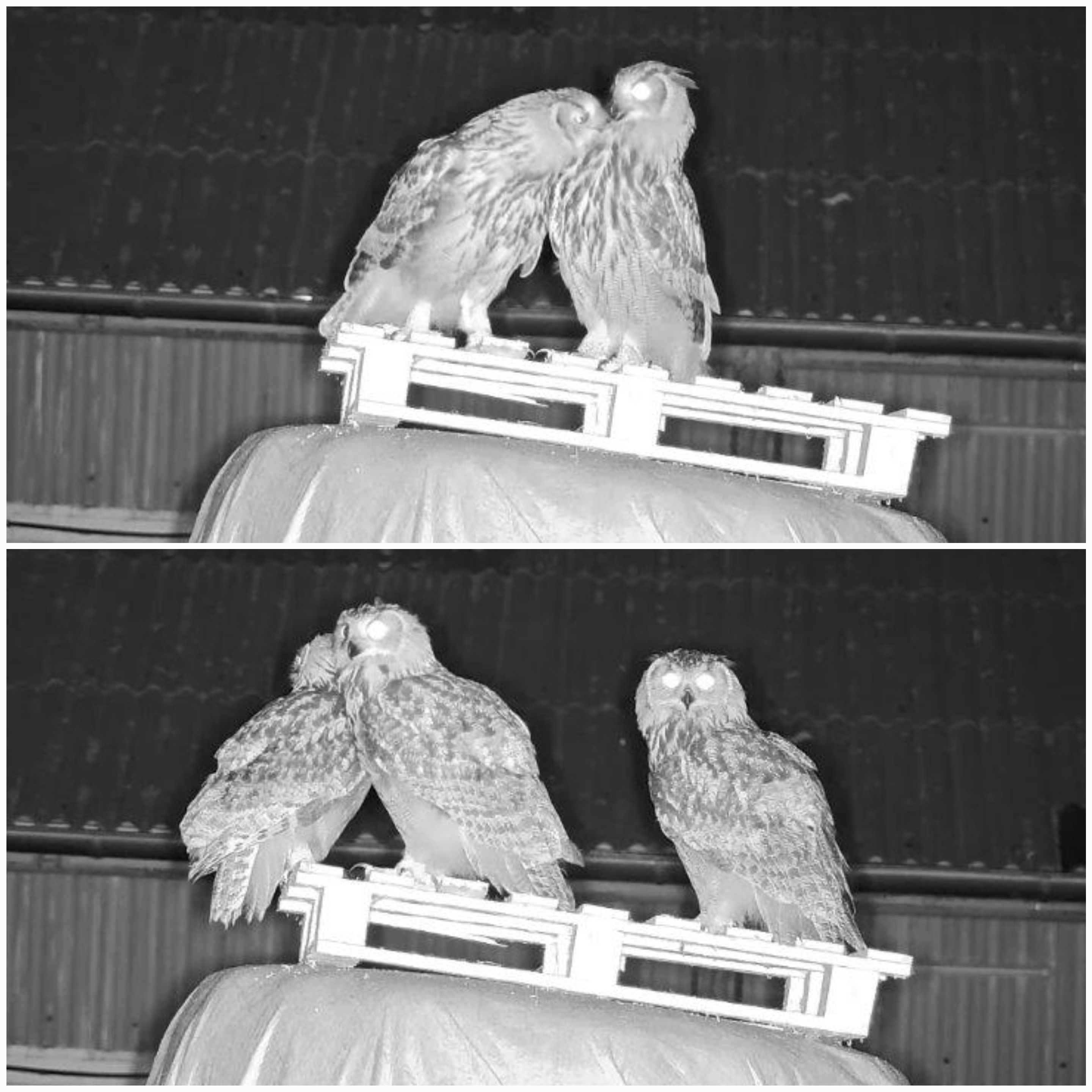 Mich würde interessieren, wann diese nächtlichen Zusammenkünfte der HJung-Uhu`s ein Ende hat. Die Altvögel lassen sich ja momentan sehr selten sehen. Irgendwann dürfte doch die Zeit gekommen sein, dass sie sich trennen müssen.