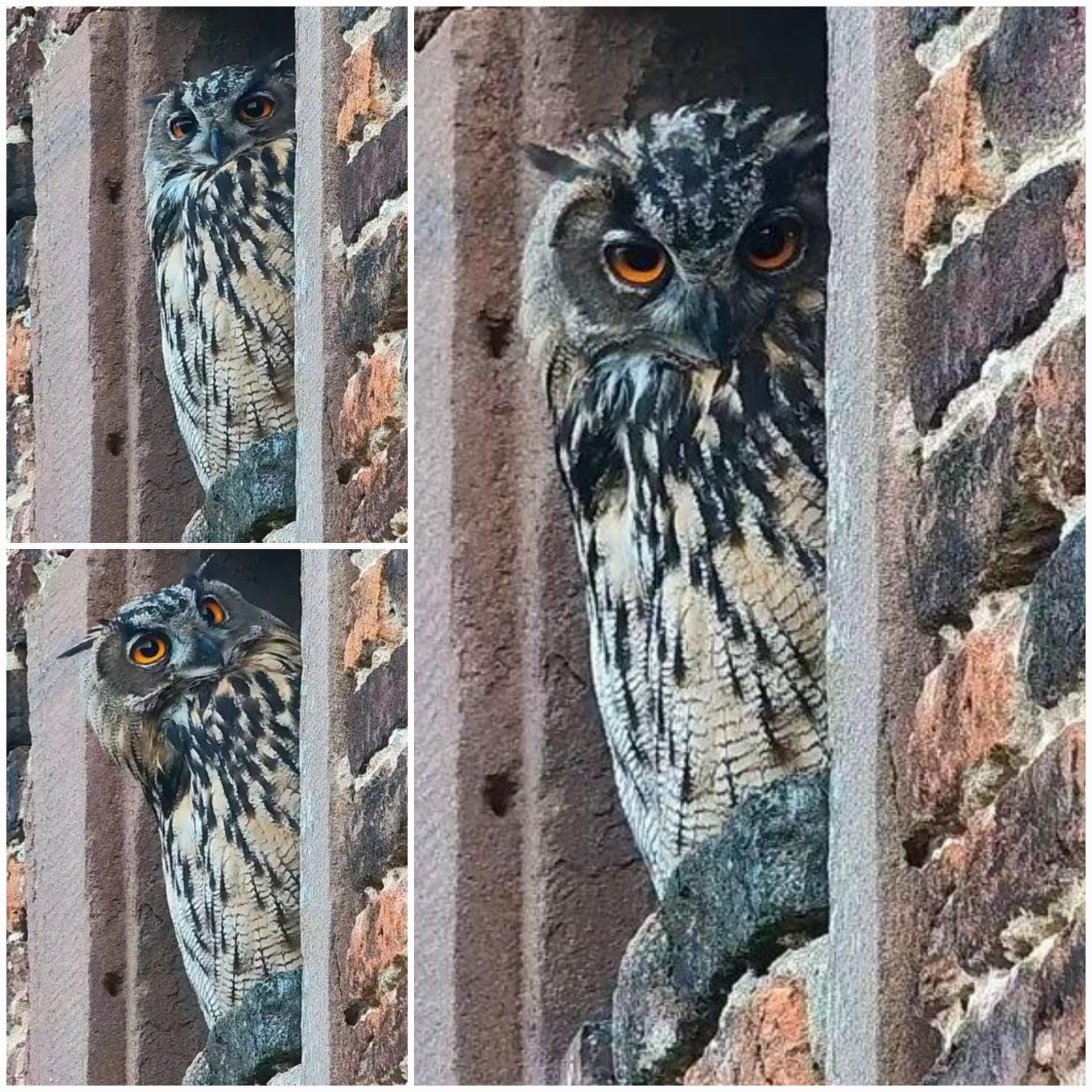 Heute Morgen konnte man gut beobachten, wieviel Respekt die jungen Uhus noch vor dem Stachelritter haben. ![]()