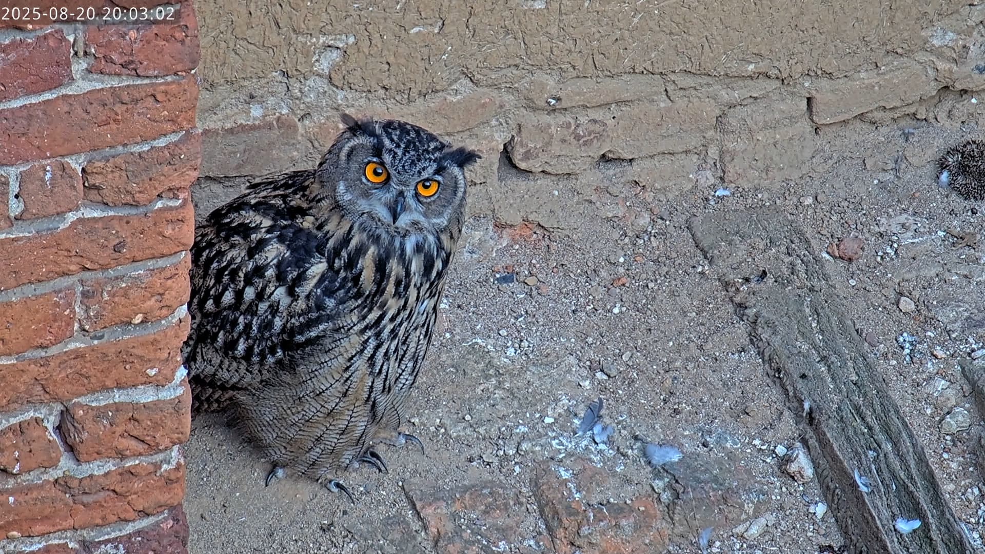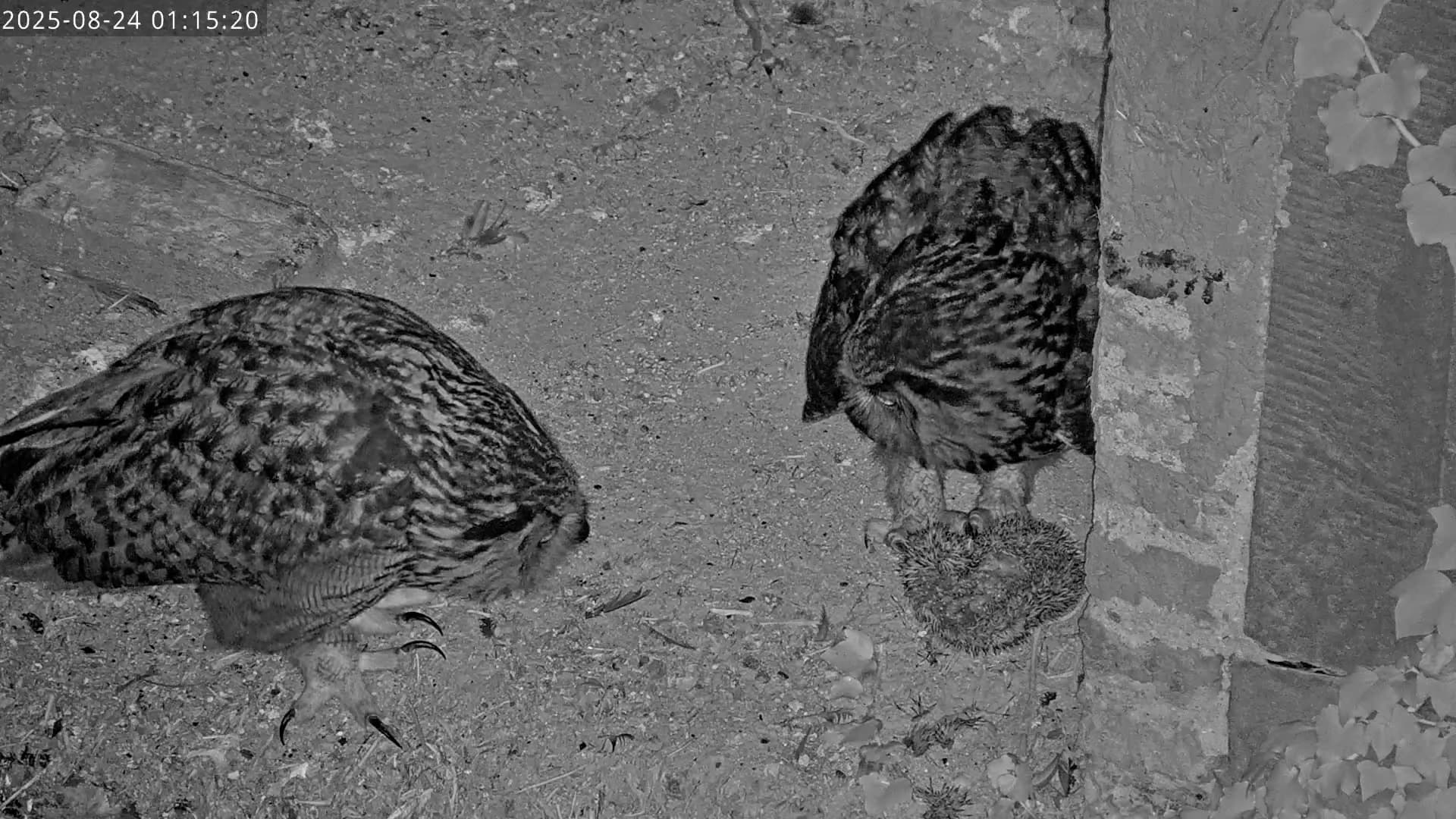 Ein Uhu ist schon in der Ruine unterwegs.