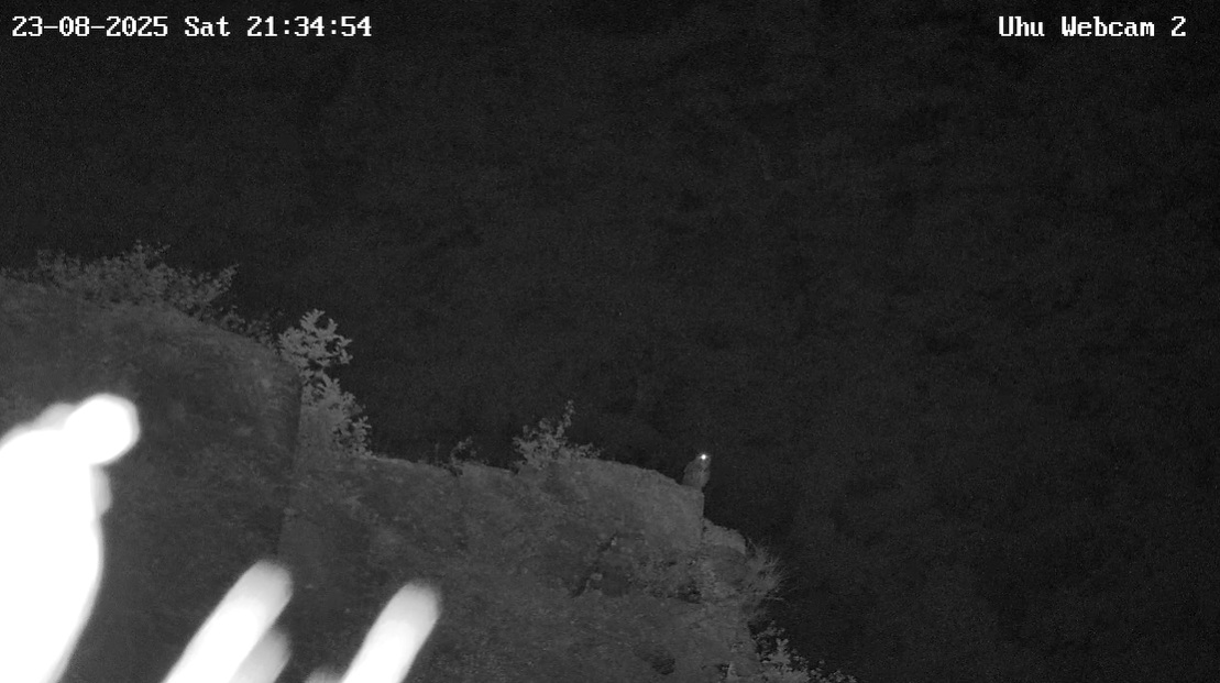 Neues aus dem Ahrtal. Auf dem Aussichtsfelsen sitzt ein Uhu. Ist es Lotte, Leo oder eines ihrer Junguhus? Wer weiß …
