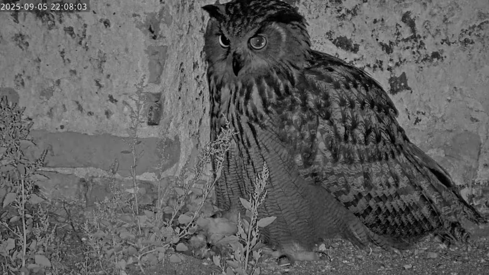 Schließlich Rückzug in die Ruine ins Treppenhaus. Ob es immer der gleiche Uhu war?