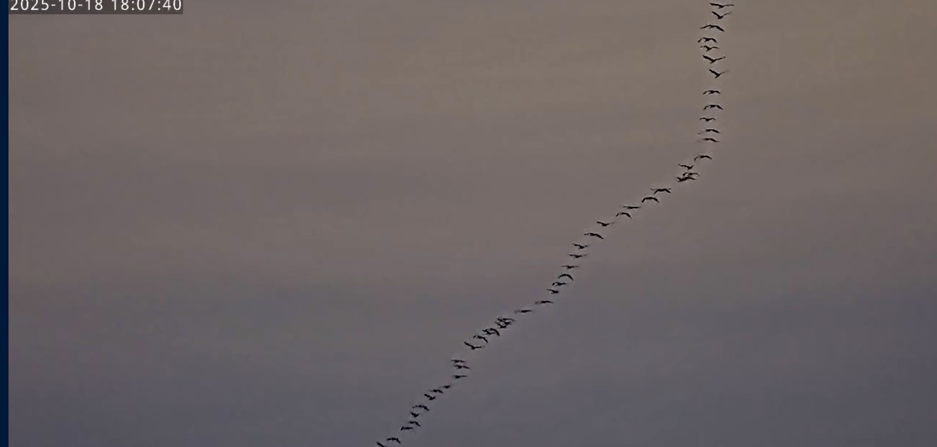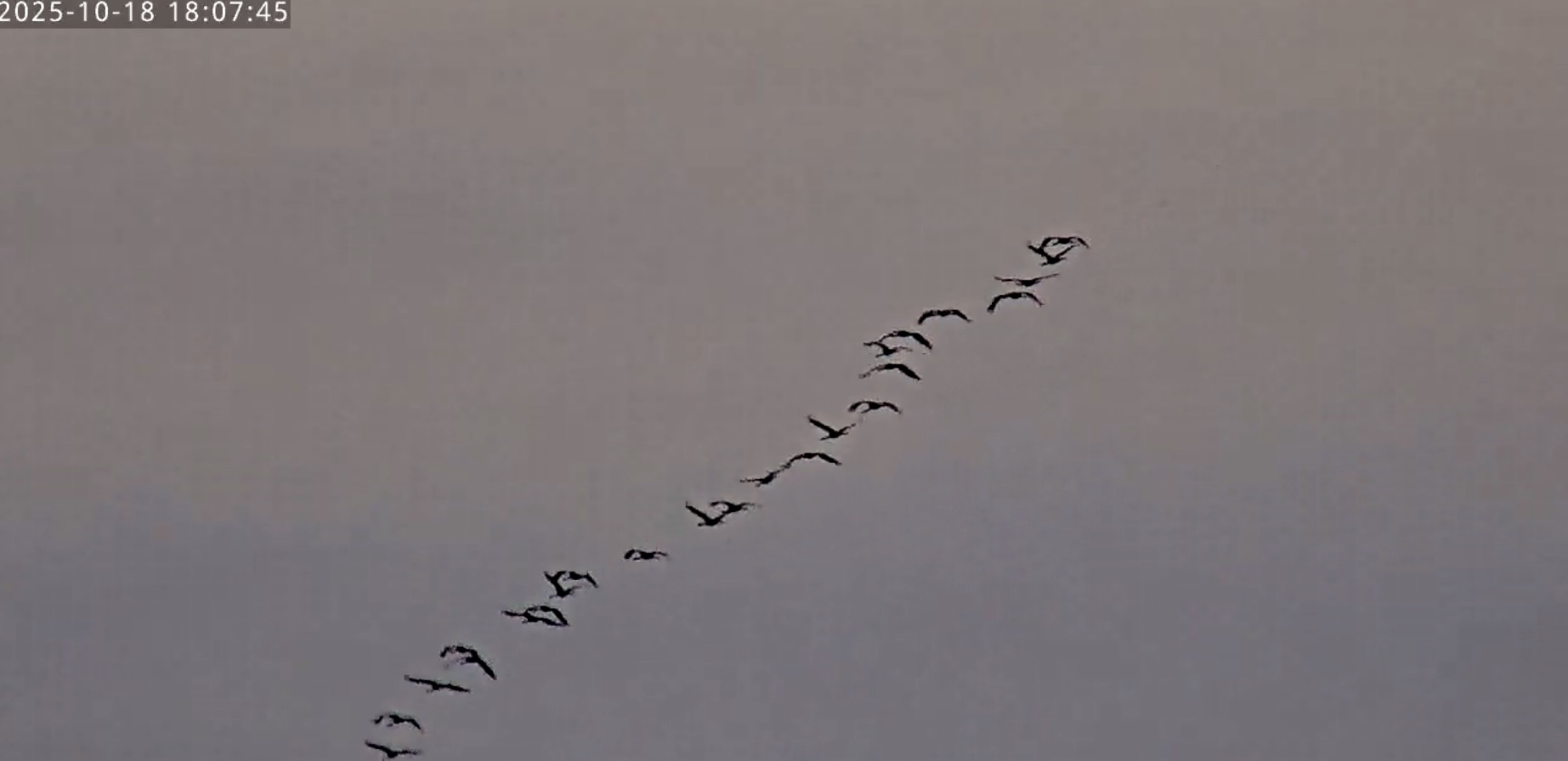Das müssen mindestens 100 Kraniche oder sogar noch mehr gewesen sein. Ein wunderschöner Anblick! Freue mich schon auf das Video!!!