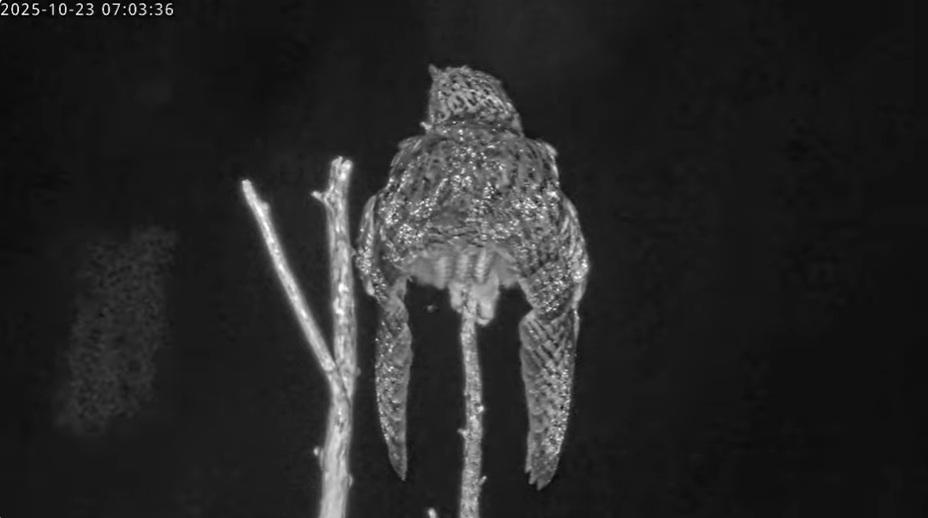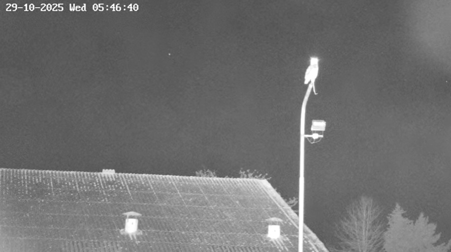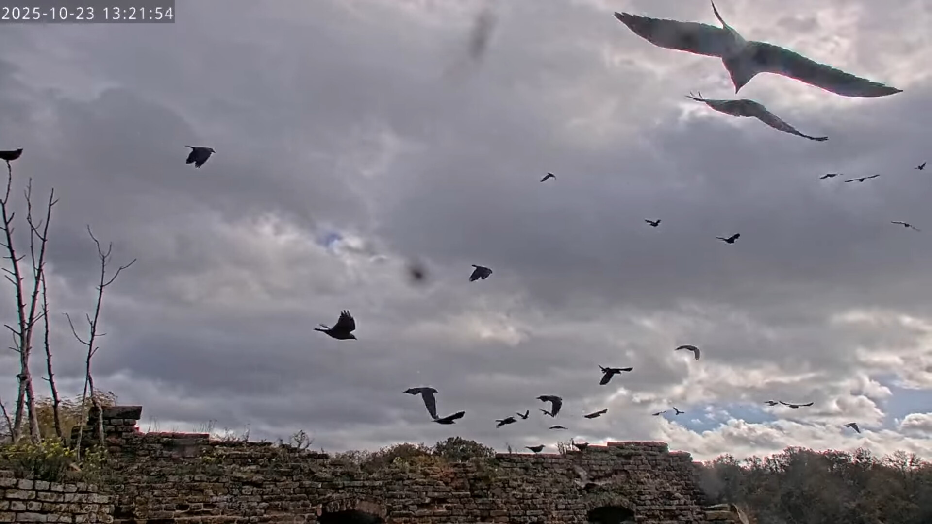 Heute war es tagsüber und auch in der Nacht sehr stürmisch über der Ruine. Vielleicht konnten wir deshalb Tristan und Isolde mehr oder weniger die ganze Nacht hindurch beobachten. Es gab auch für beide Geflügel (Taube?). Zweimal waren beide zusammen vor Cam4 zu sehen.