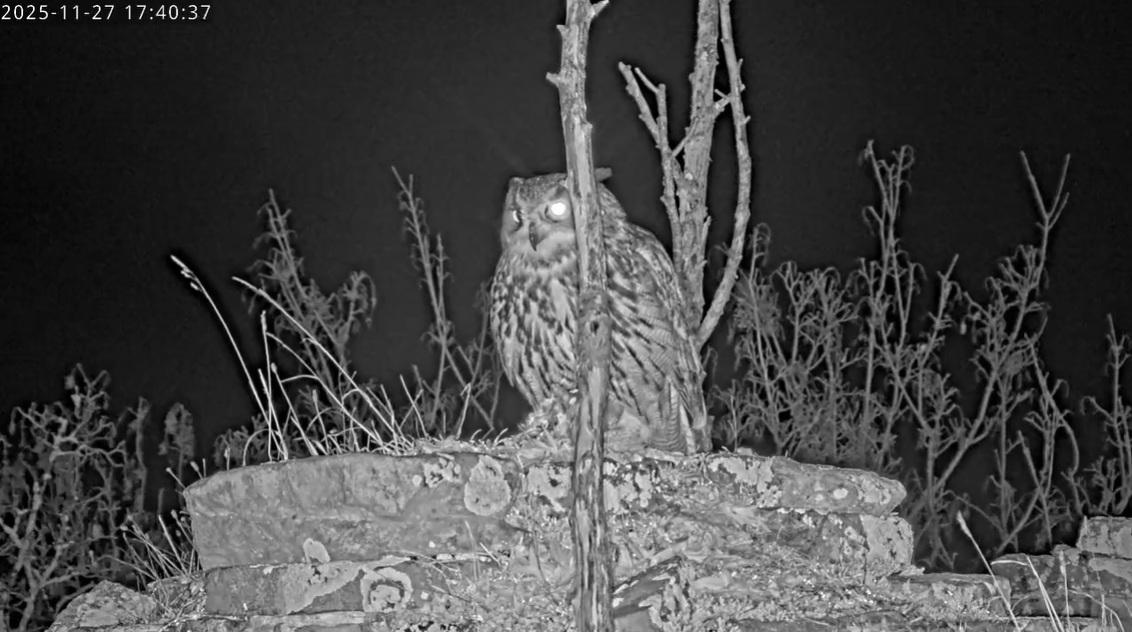 Hier noch ein Nachtrag aus der Nacht im Ahrtal vor Cam5. Einer der Uhus ließ sich dann noch zweimal auf dem näher gelegenen Felsen blicken.
