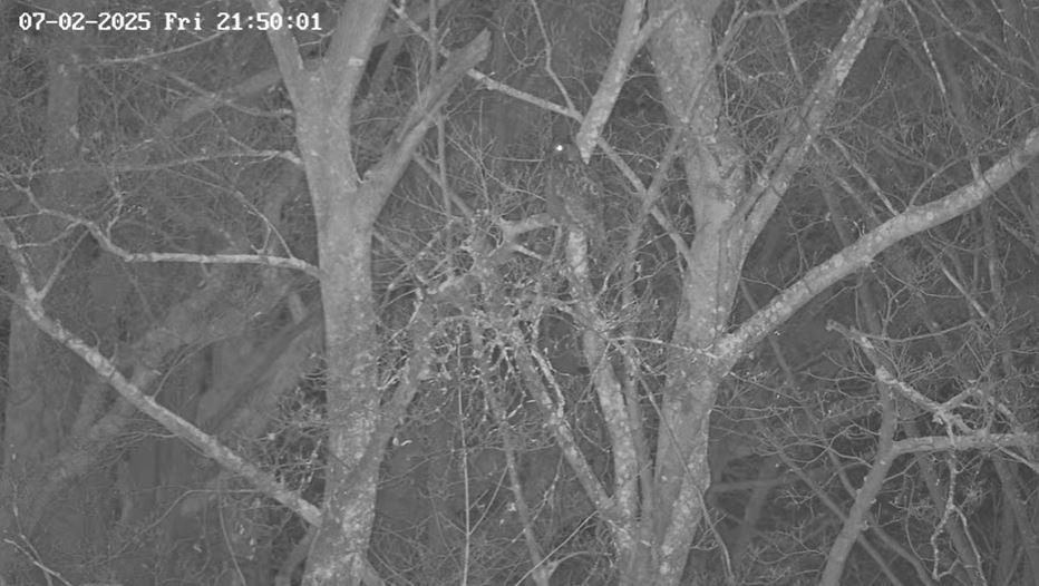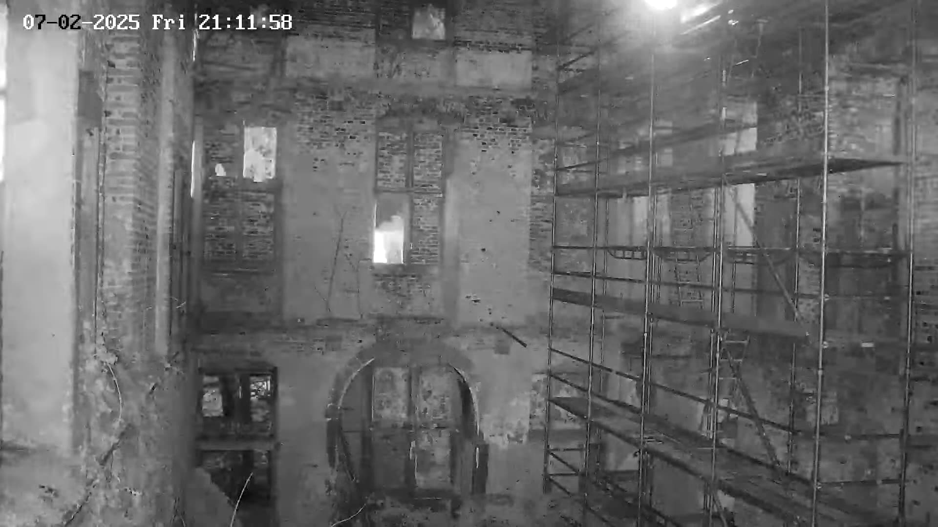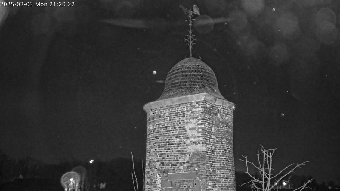 Noch im Tageslichtmodus der Kameras war Tristan zu hören, aber noch nicht zu sehen. Dann tauchte er verschwommen in der linken Fensternische auf. Als auf Nachtsicht geschaltet wurde, konnte man ihn gut erkennen.