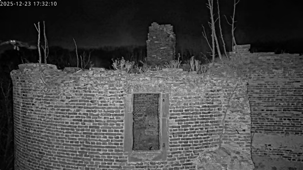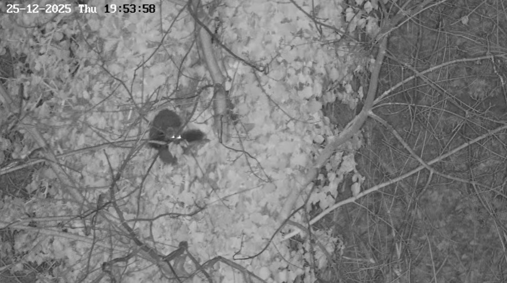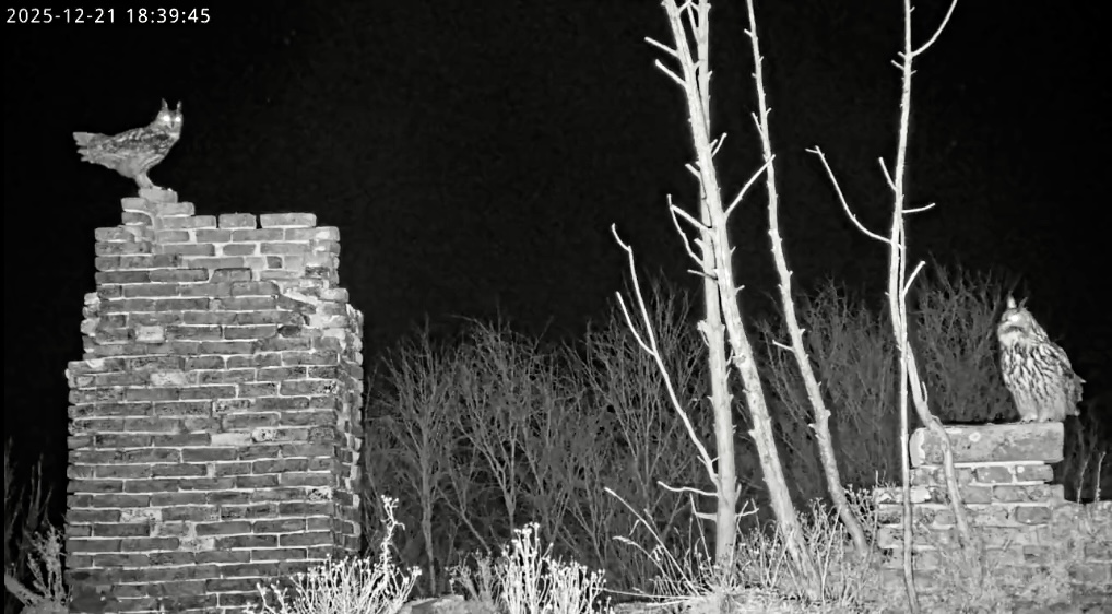 Besuch! Beide sind wieder in der Ruine - und die Nacht ist noch sehr jung. Mal sehen, was wir so beobachten können.