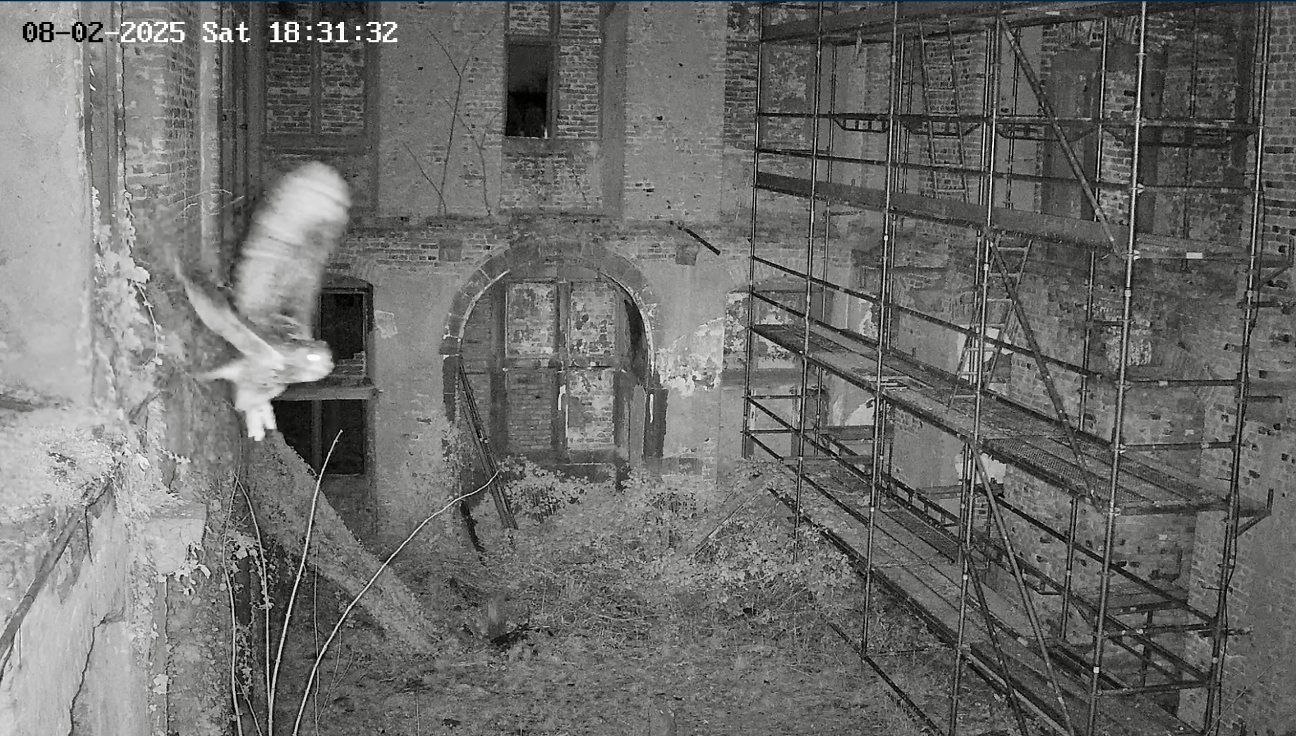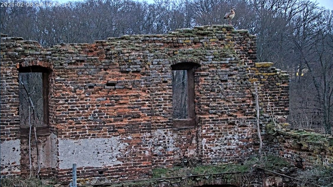 Stundenlang war nichts los in der Ruine und plötzlich geht alles super- schnell. Beide landen, dann Paarung.