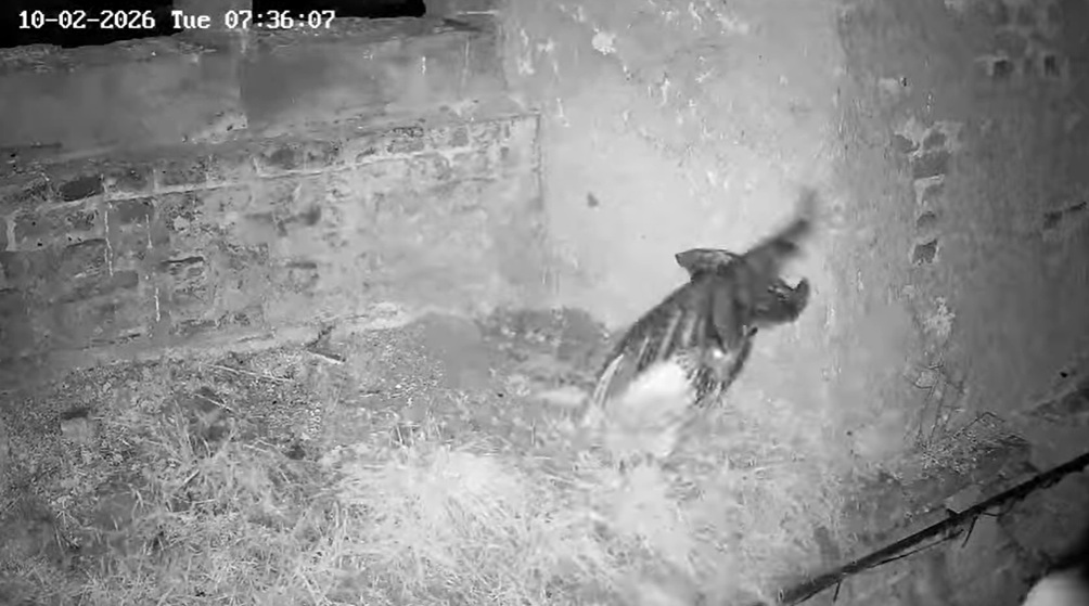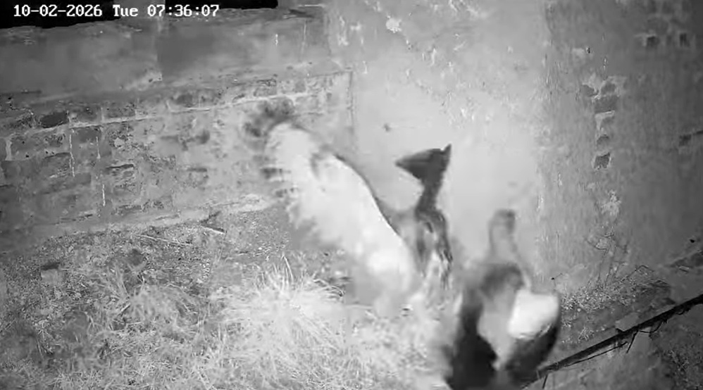 Der Nistkasten in Marburg musste wohl auch noch gegrn Nilgänse verteidigt werden wobei ich mich frage ob da die Gänse nicht doch etwas “optimistisch” wären. Dass die Küken wunderbar aus der Höhe des Ruinen-Nest hüpfen können , war ja letztes jahr zu bestaunen. Aber die Spitze eines Kirchturms…??