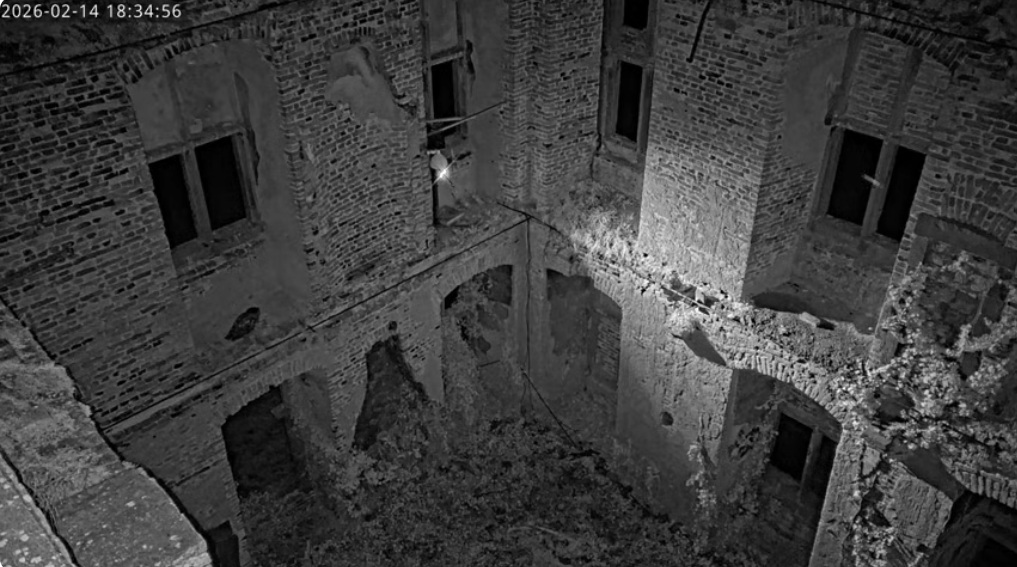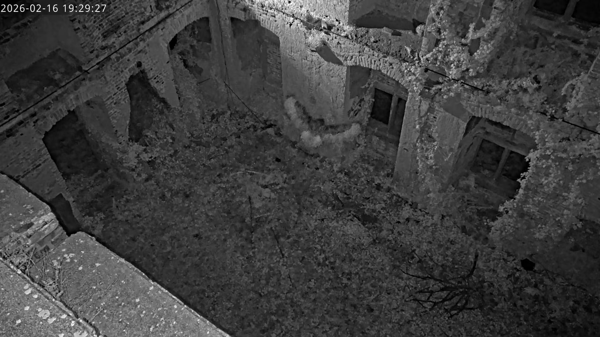 Schließlich jagd sie noch der flüchtenden Gans hinterher, die anscheinend im Zickzack durch die Ruine fliegt. Tristan hat gestern ja nicht geliefert - Hunger ? Sicht von Cam3.