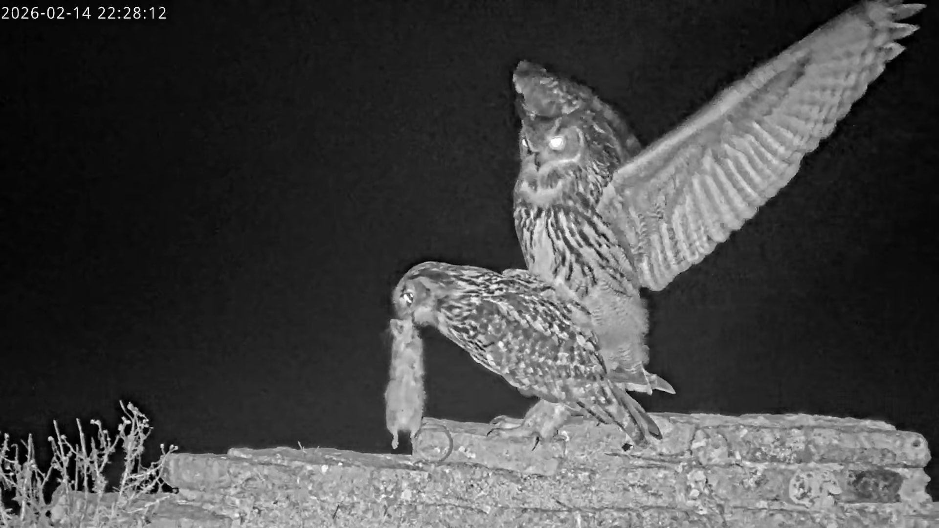 Isolde frisst an der Ratte und scheint nicht wirklich hungrig zu sein. Sie ruft und fliegt zurück zur Kuhle. Sofort kommt Tristan und holt die Reste wieder ab - Zweitverwertung …
