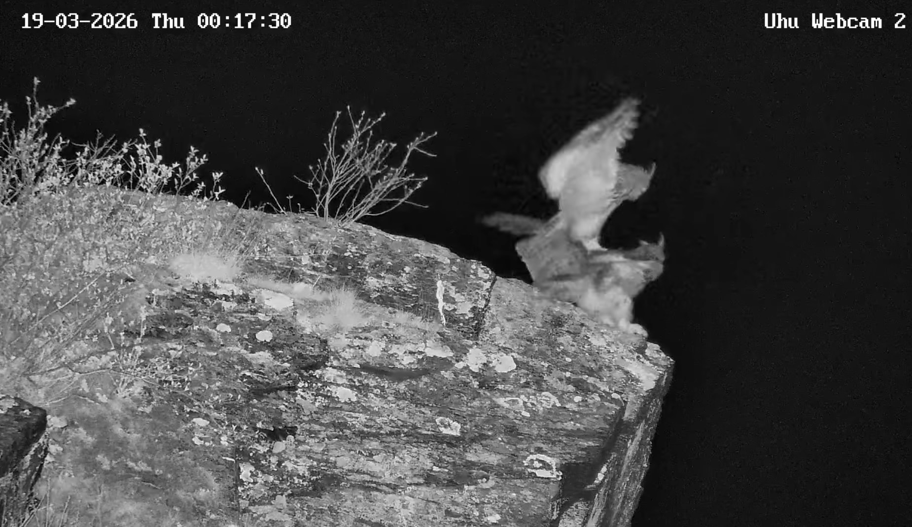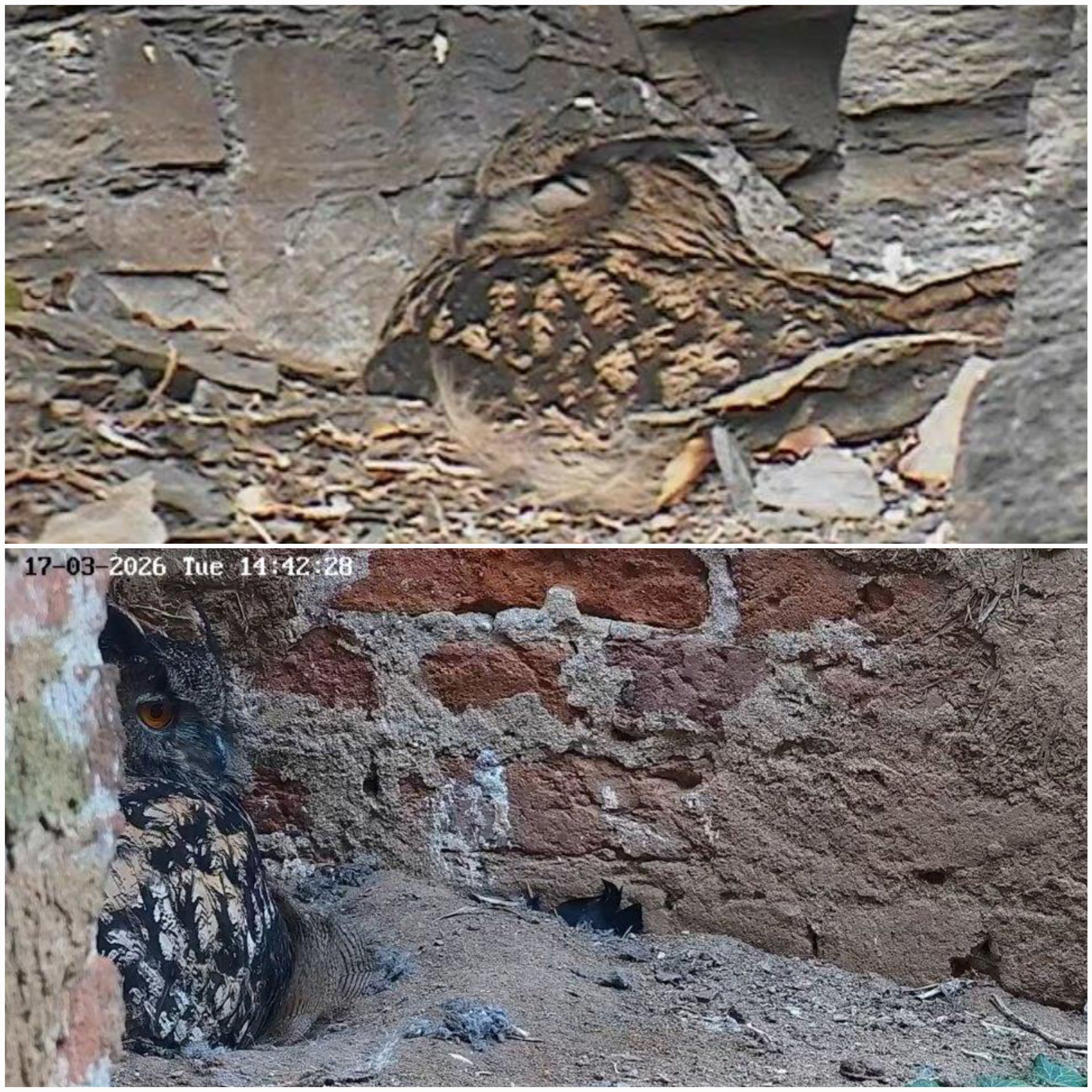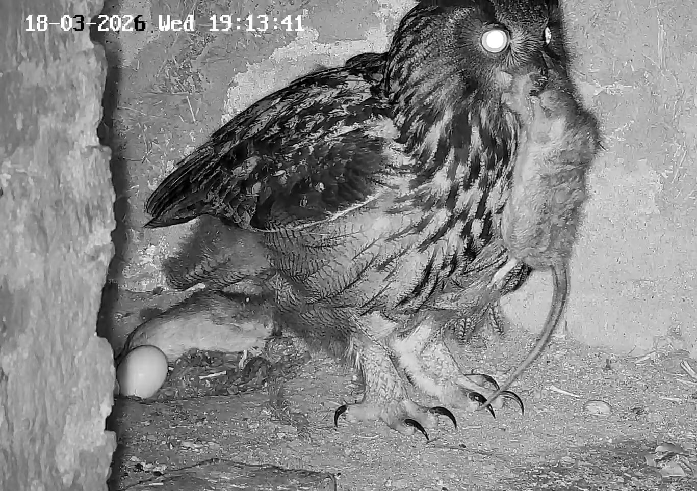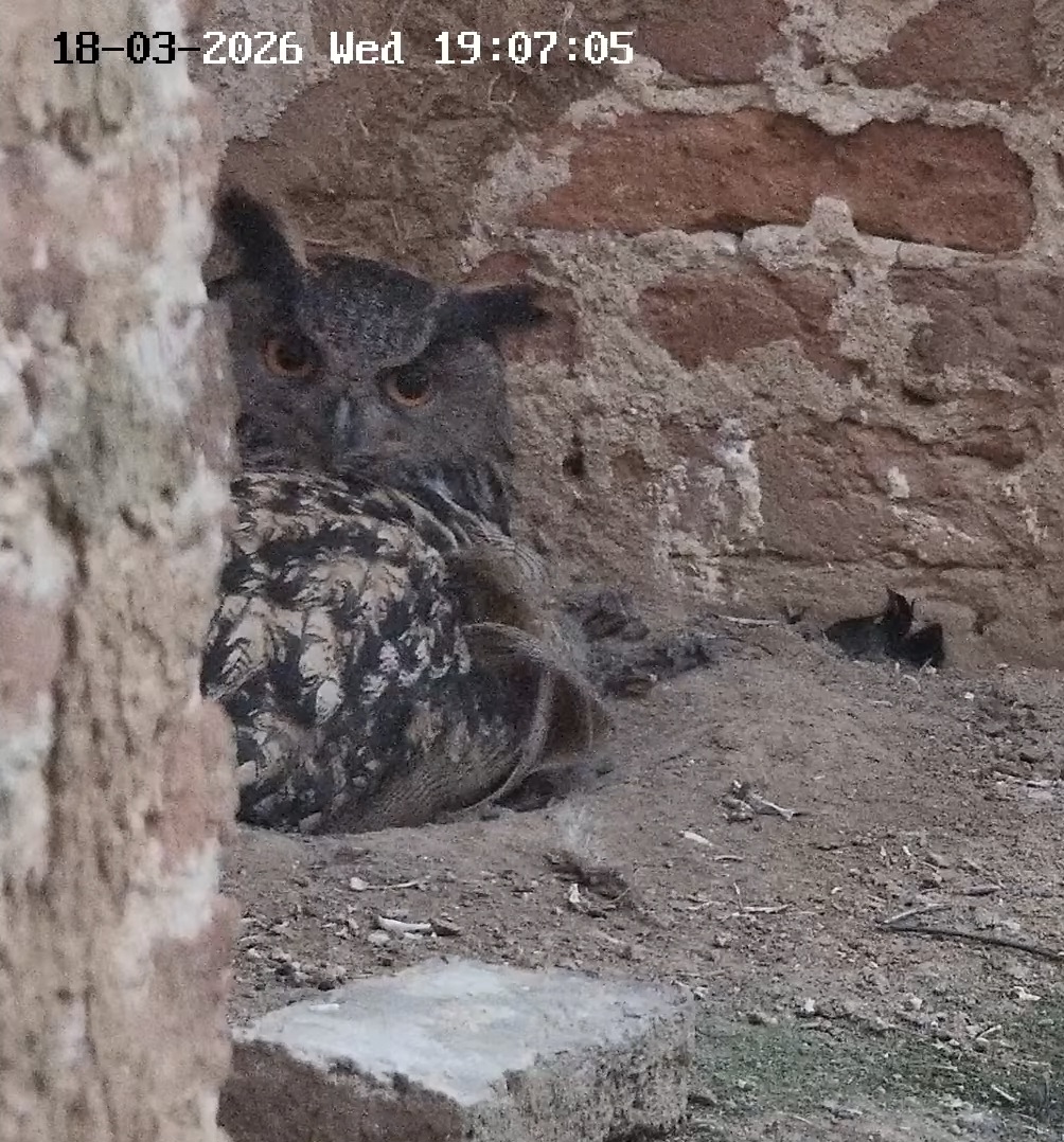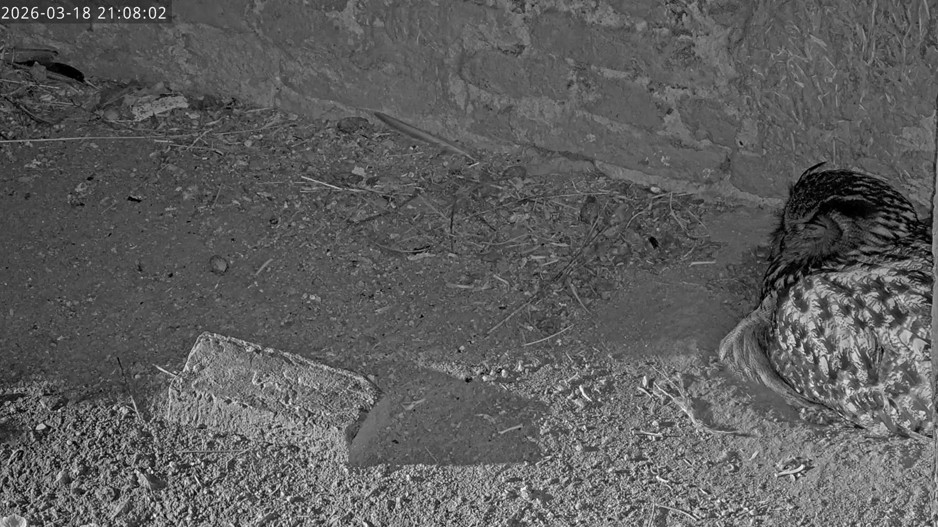 In Marburg ist gerade wohl das erste Küken geschlüpft. Man hört es ziemlich laut piepen zwischen 22:30-22:40 und Mama Uhu scheint dabei zu helfen sich aus dem Ei zu pellen. Tatsächlich sehen tut mak es bisher nicht , da die Kamera den Boden nicht einfängt.