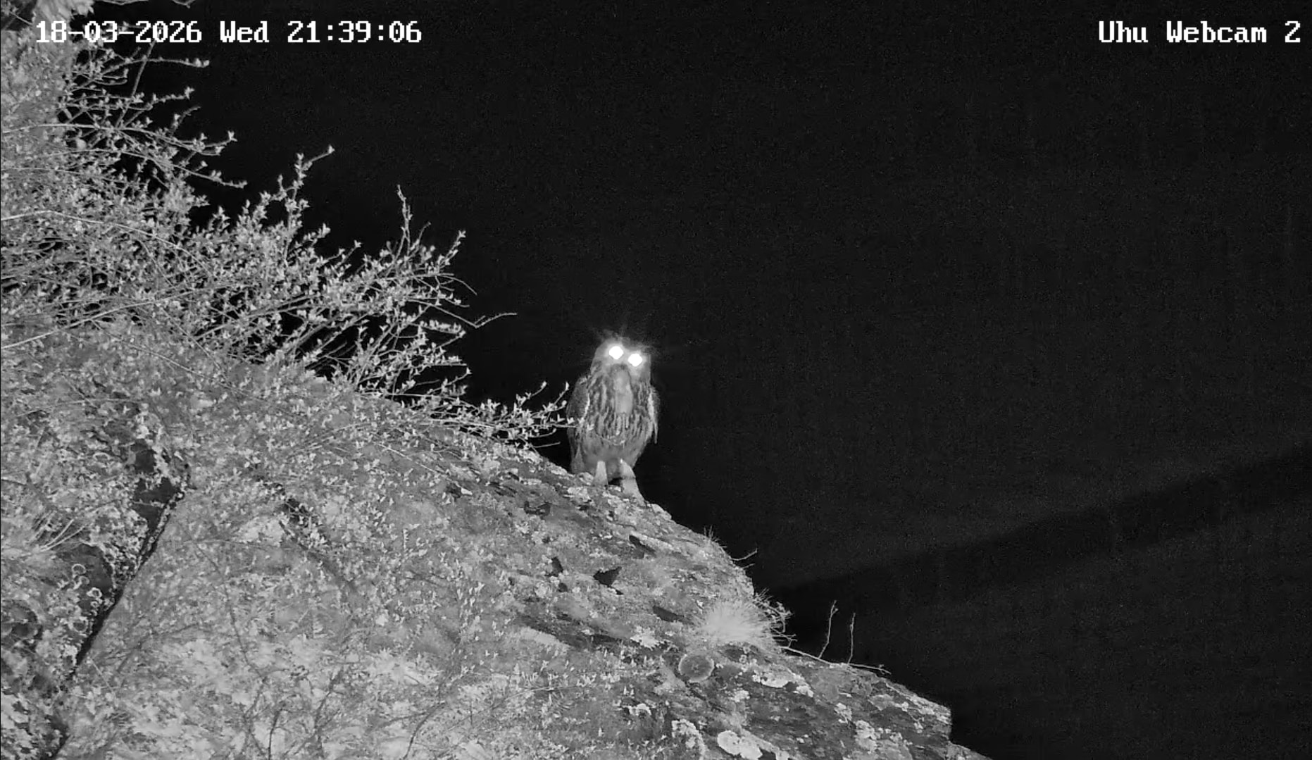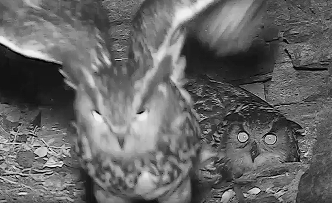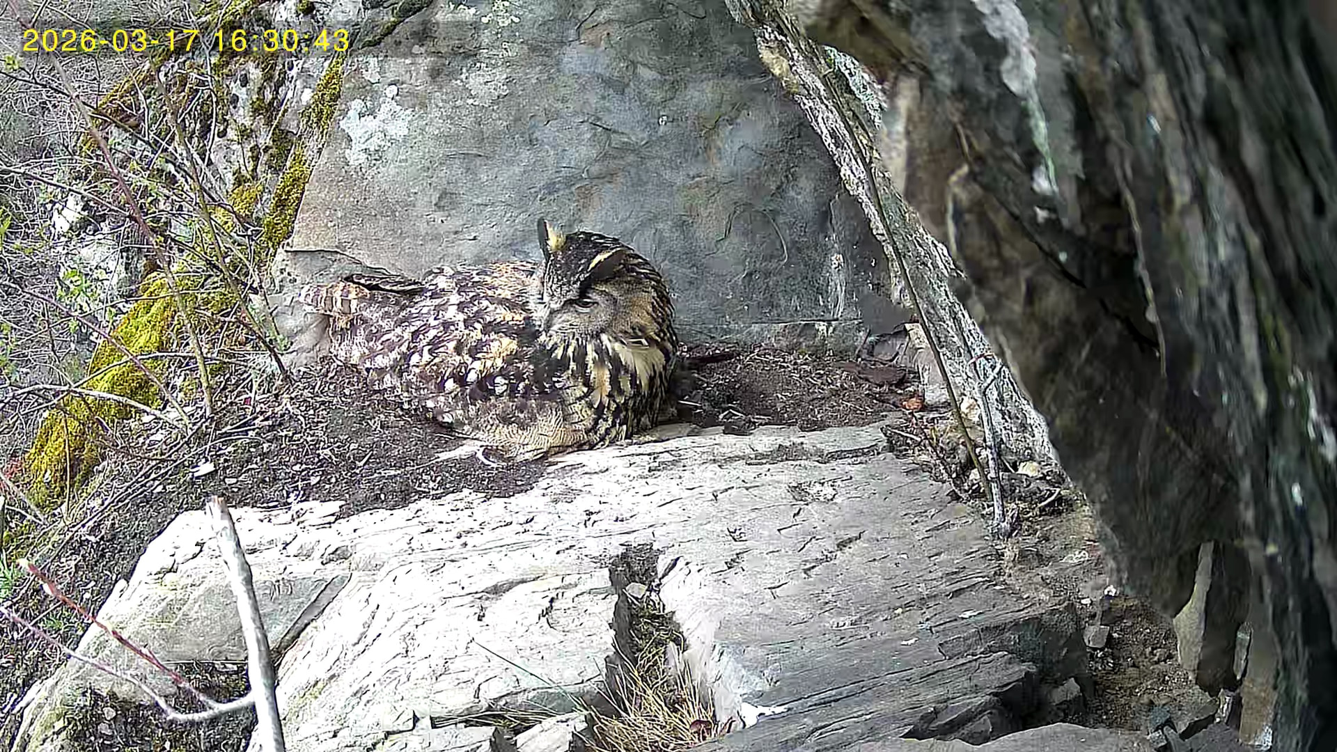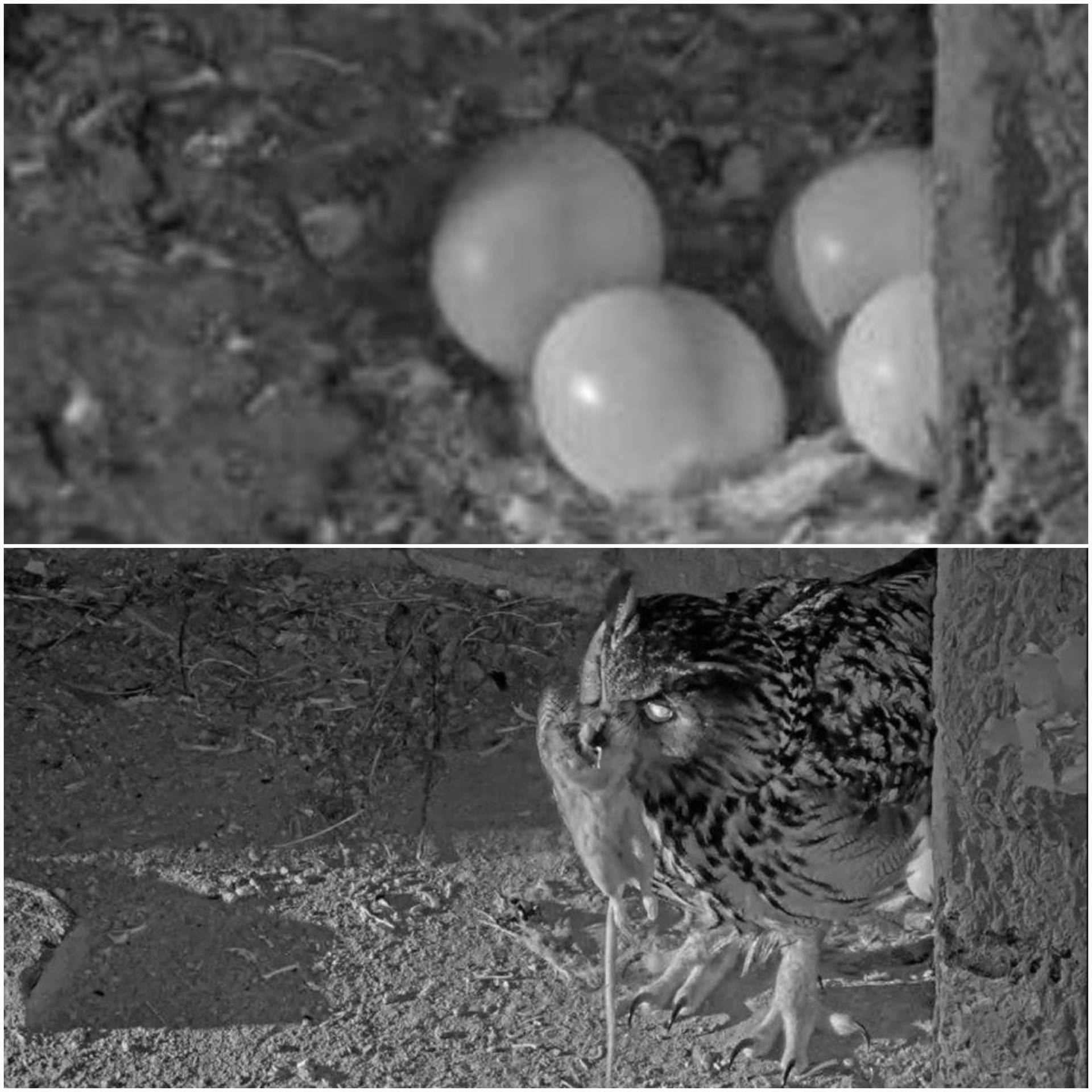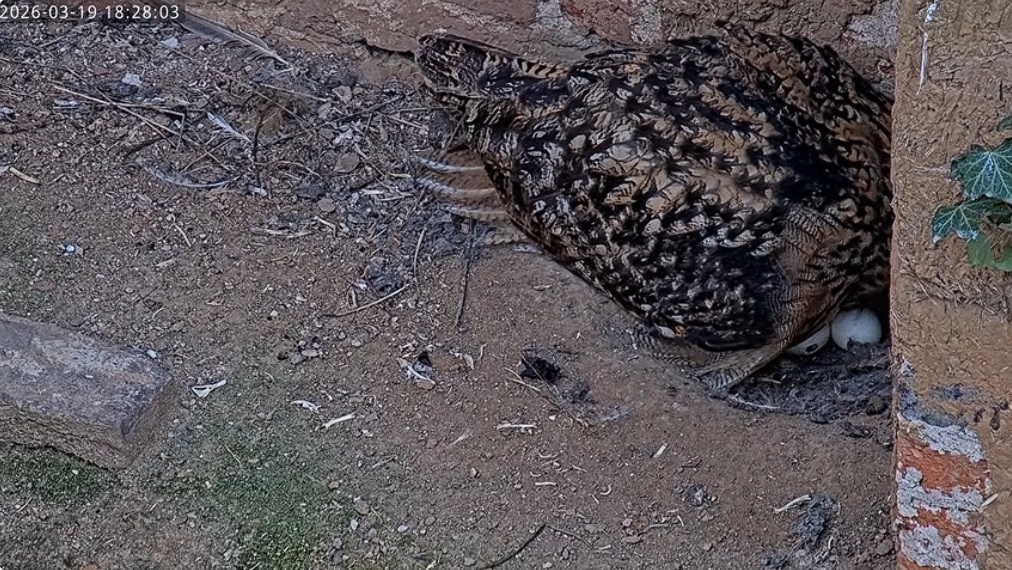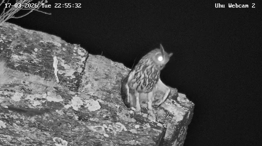In Marburg ist gerade wohl das erste Küken geschlüpft. Man hört es ziemlich laut piepen zwischen 22:30-22:40 und Mama Uhu scheint dabei zu helfen sich aus dem Ei zu pellen. Tatsächlich sehen tut mak es bisher nicht , da die Kamera den Boden nicht einfängt.