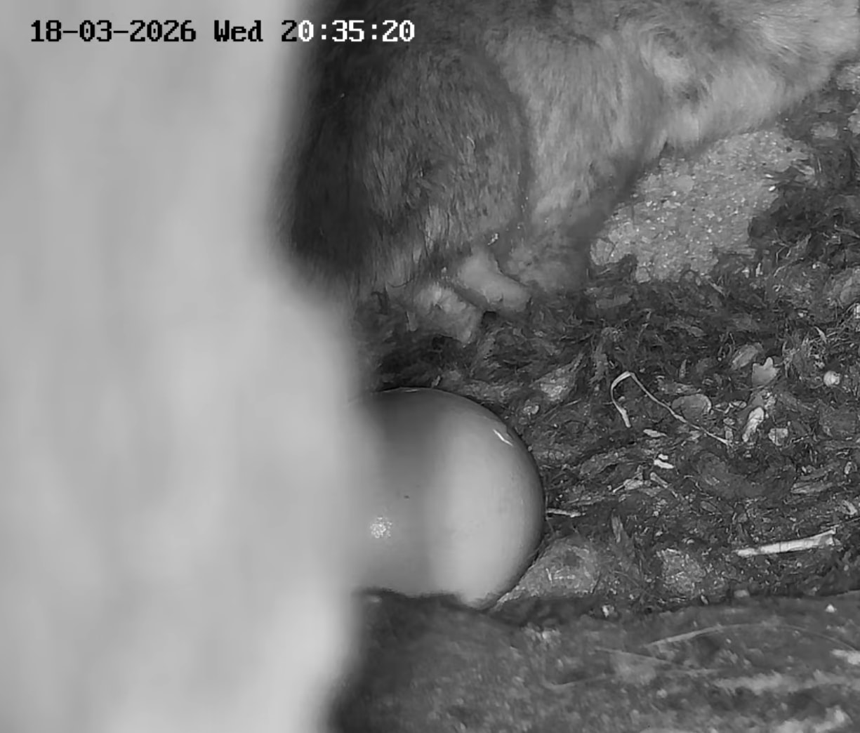 Kurzer Screen: Es ist ein deutlich sichtbares Loch im Ei zu sehen. Der Schlupf geht also voran.