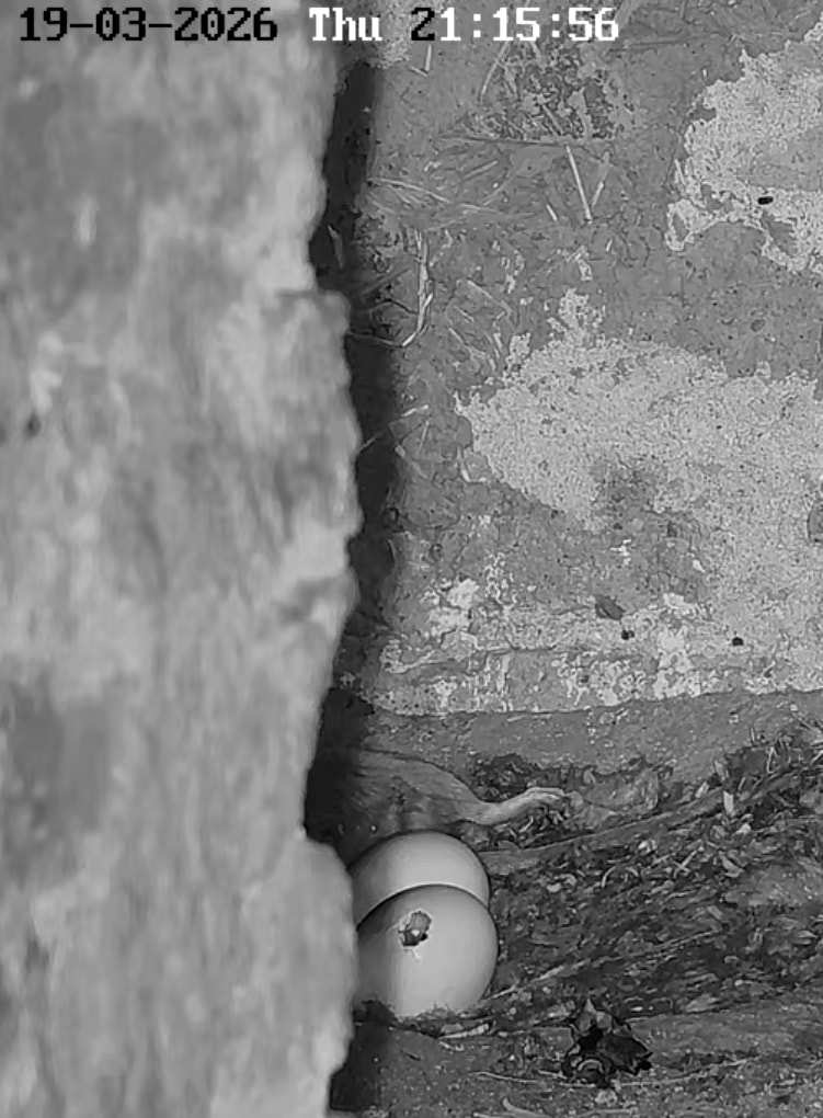 Und die Gegenaufnahme von Cam2. Um 21:40 sitzt er nach Lieferung wieder da hnd man hört das vertraute Gemecker einer Nilgans weit entfernt