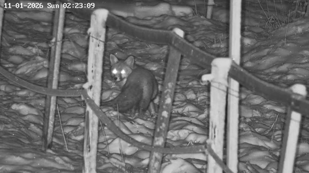 Dann auf dem Zaun - unter ihm ein Hasentier.