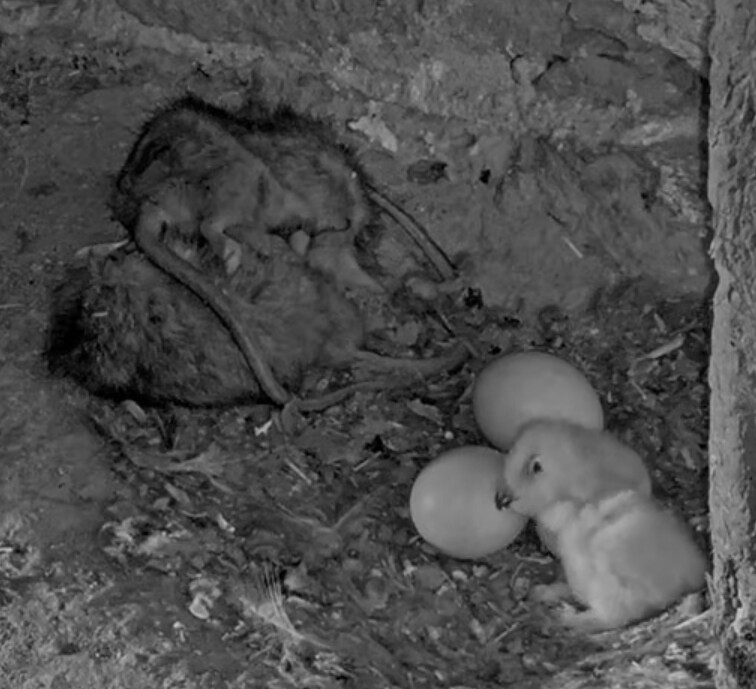 Das erste Uhuküken in der Ruine ! Alles Gute für Dein hoffentlich langes Leben !