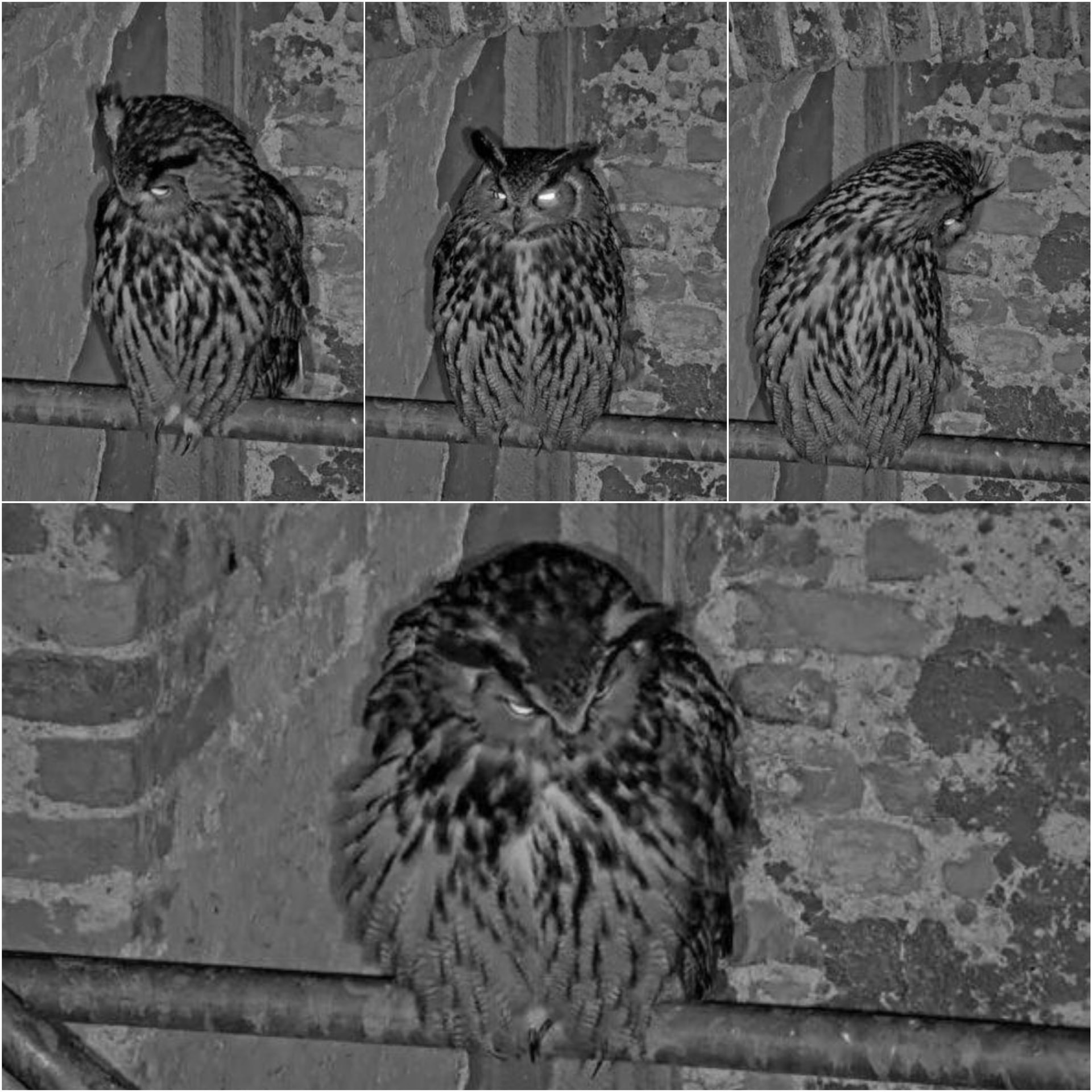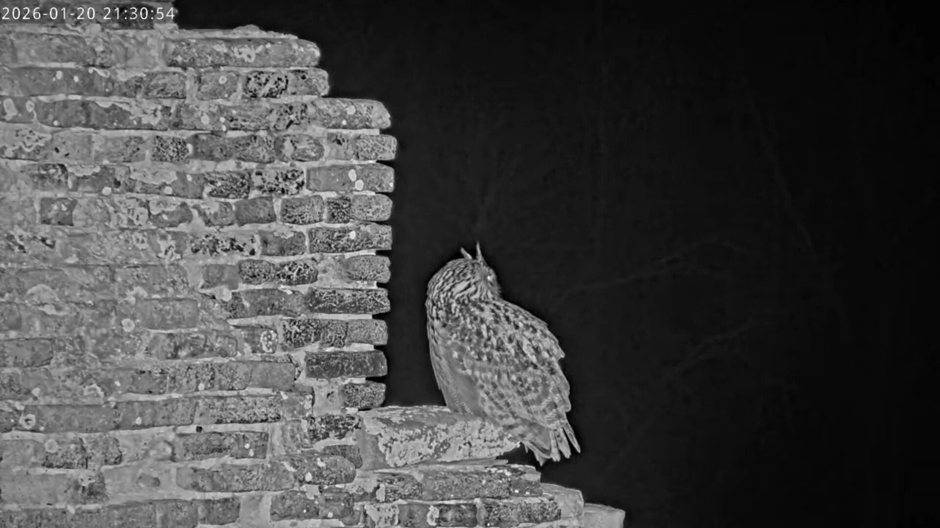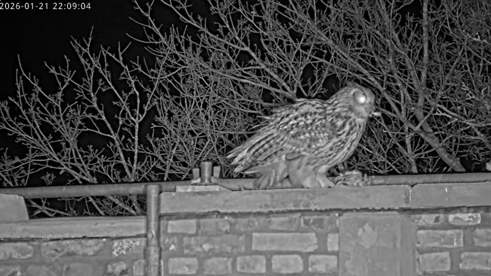 Nach einem kurzen Ausflug in die Nacht kehrt Isolde wieder auf das Gemäuer des Kamins zurück, richtet ihr Gefieder und befreit es von einer losen Feder (?).