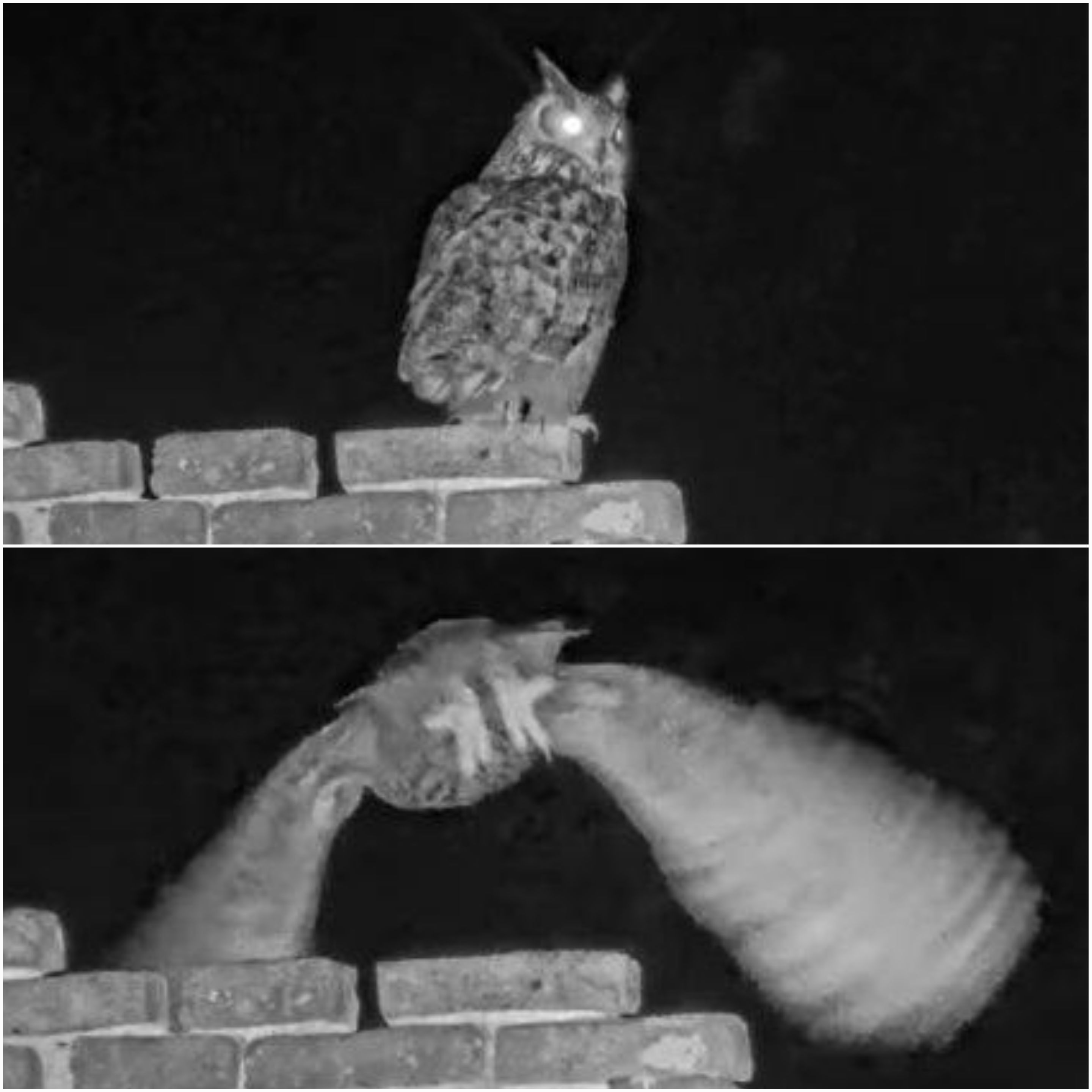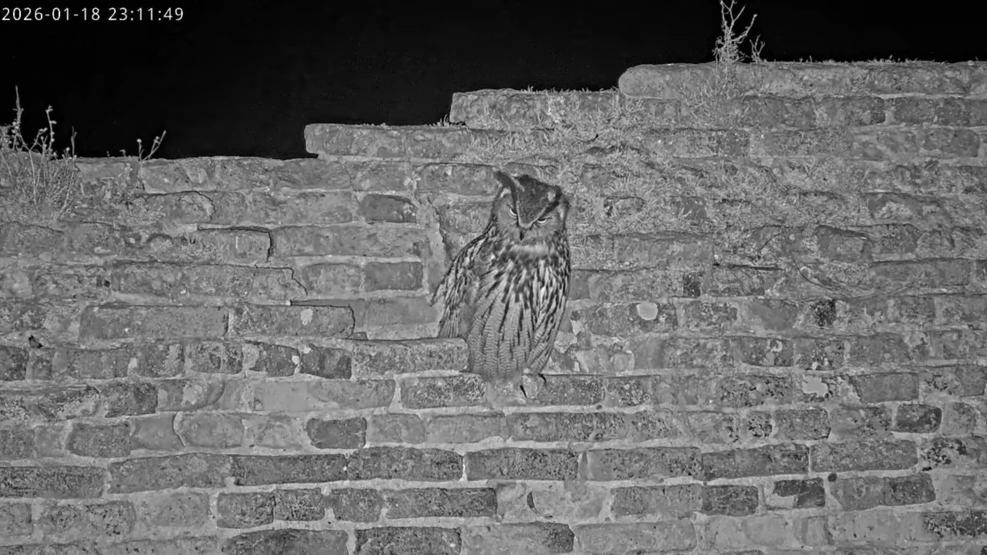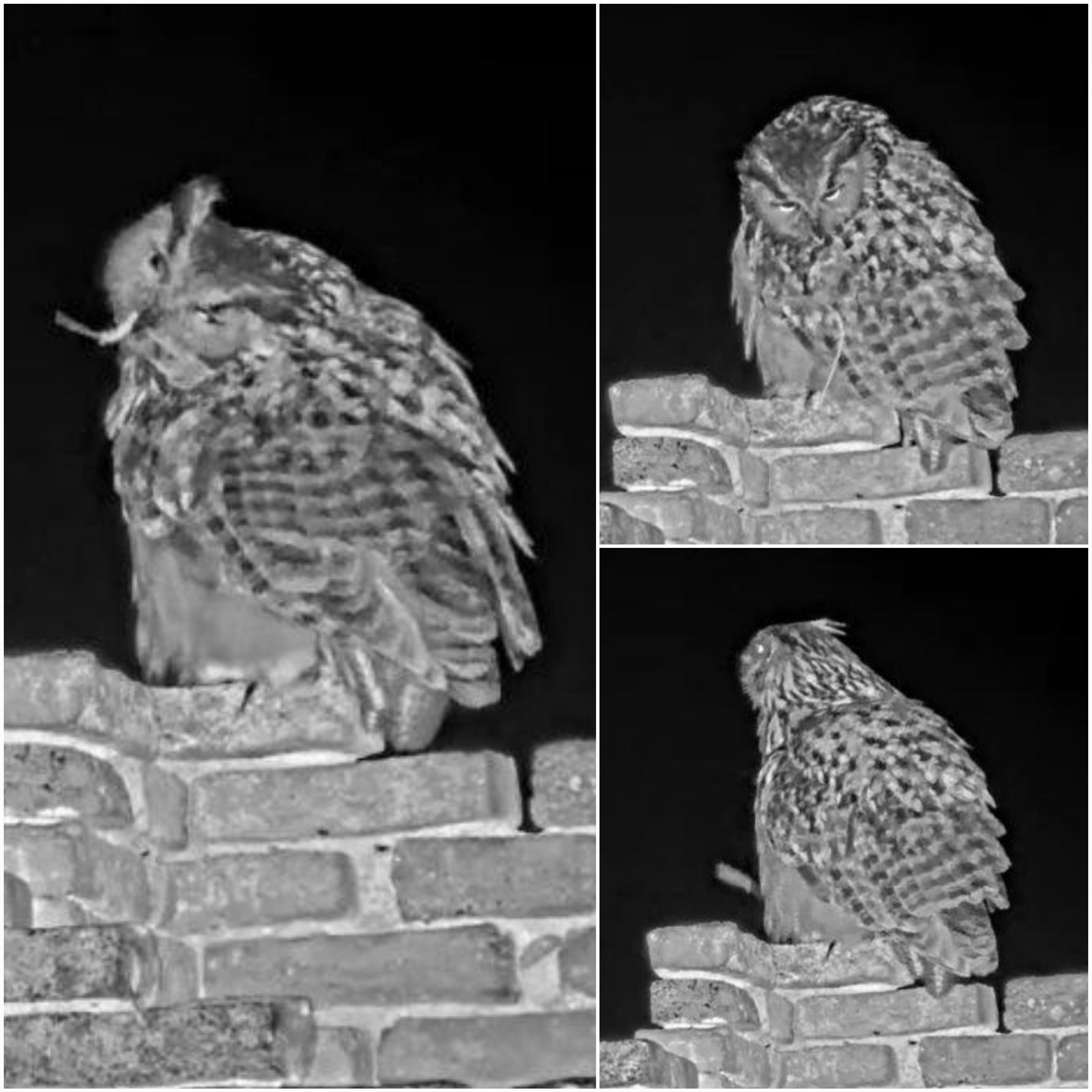 Nach einem kurzen Ausflug in die Nacht kehrt Isolde wieder auf das Gemäuer des Kamins zurück, richtet ihr Gefieder und befreit es von einer losen Feder (?).